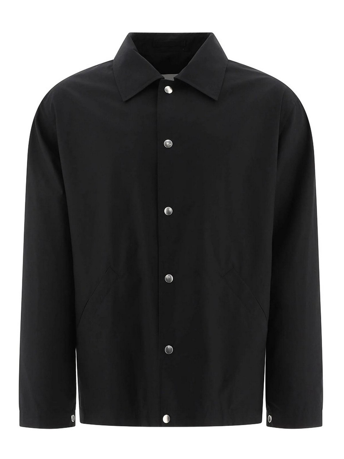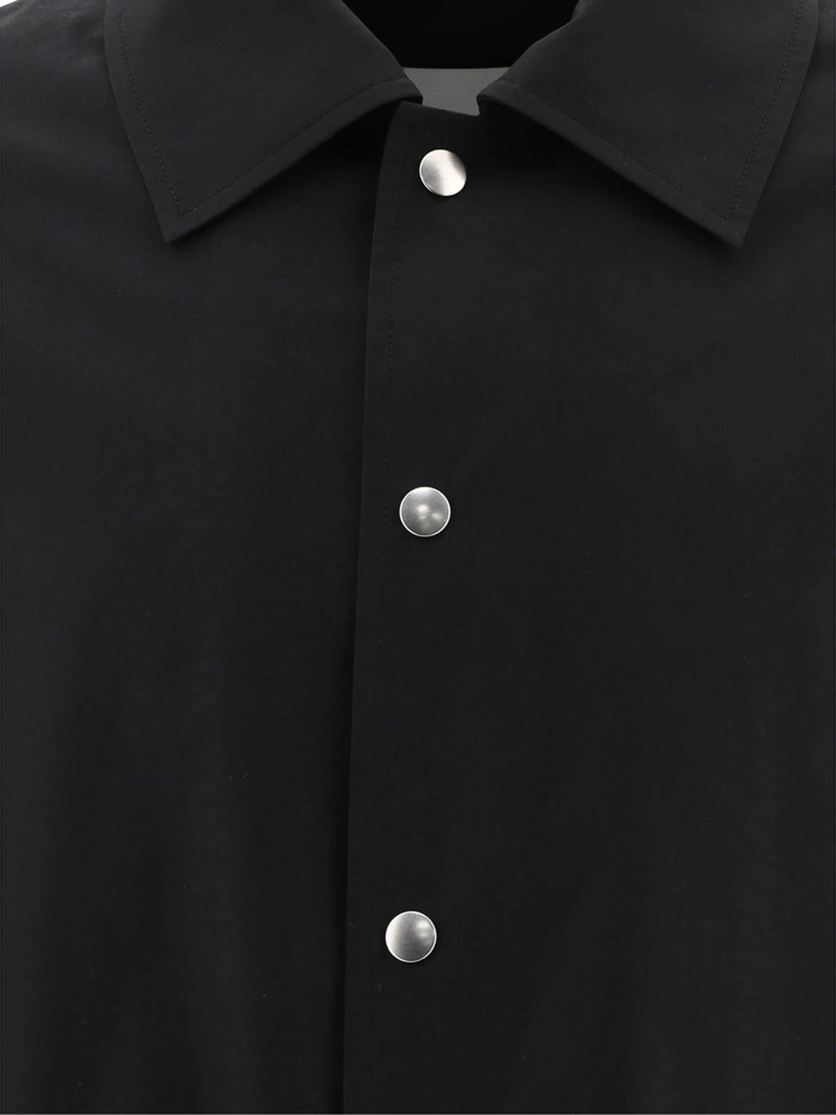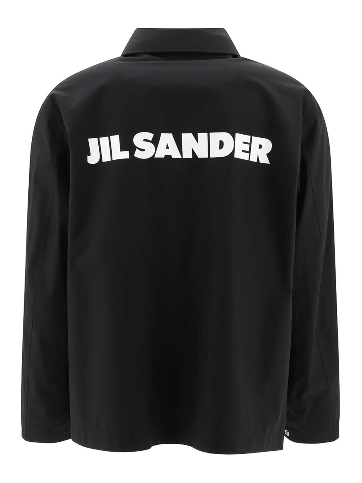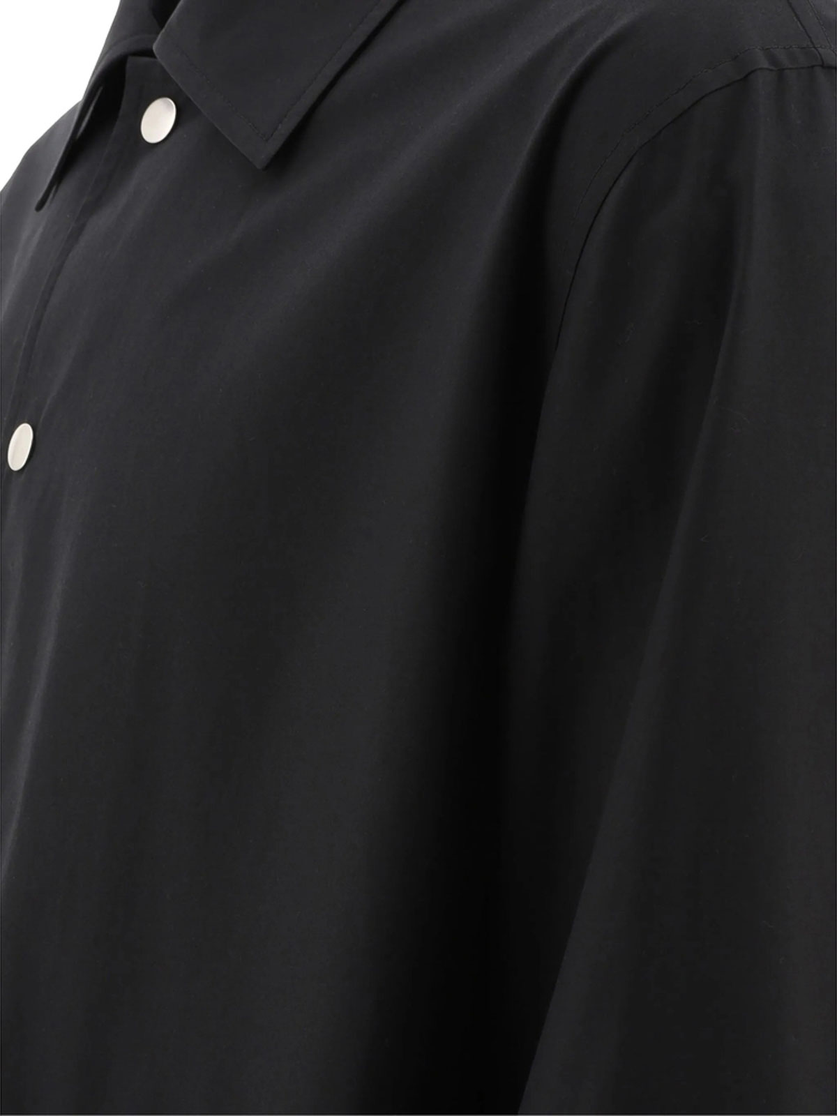 Black cotton poplin texture classic collar long sleeves press-stud fastening cuffs two side welt pockets logo print to the rear straight hem front press-stud fastening