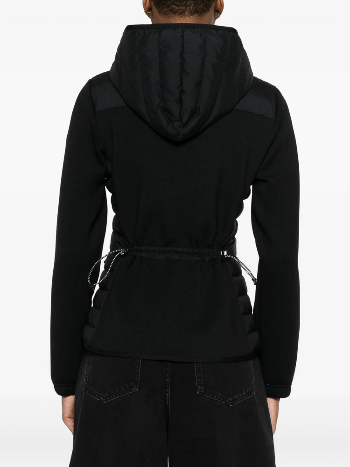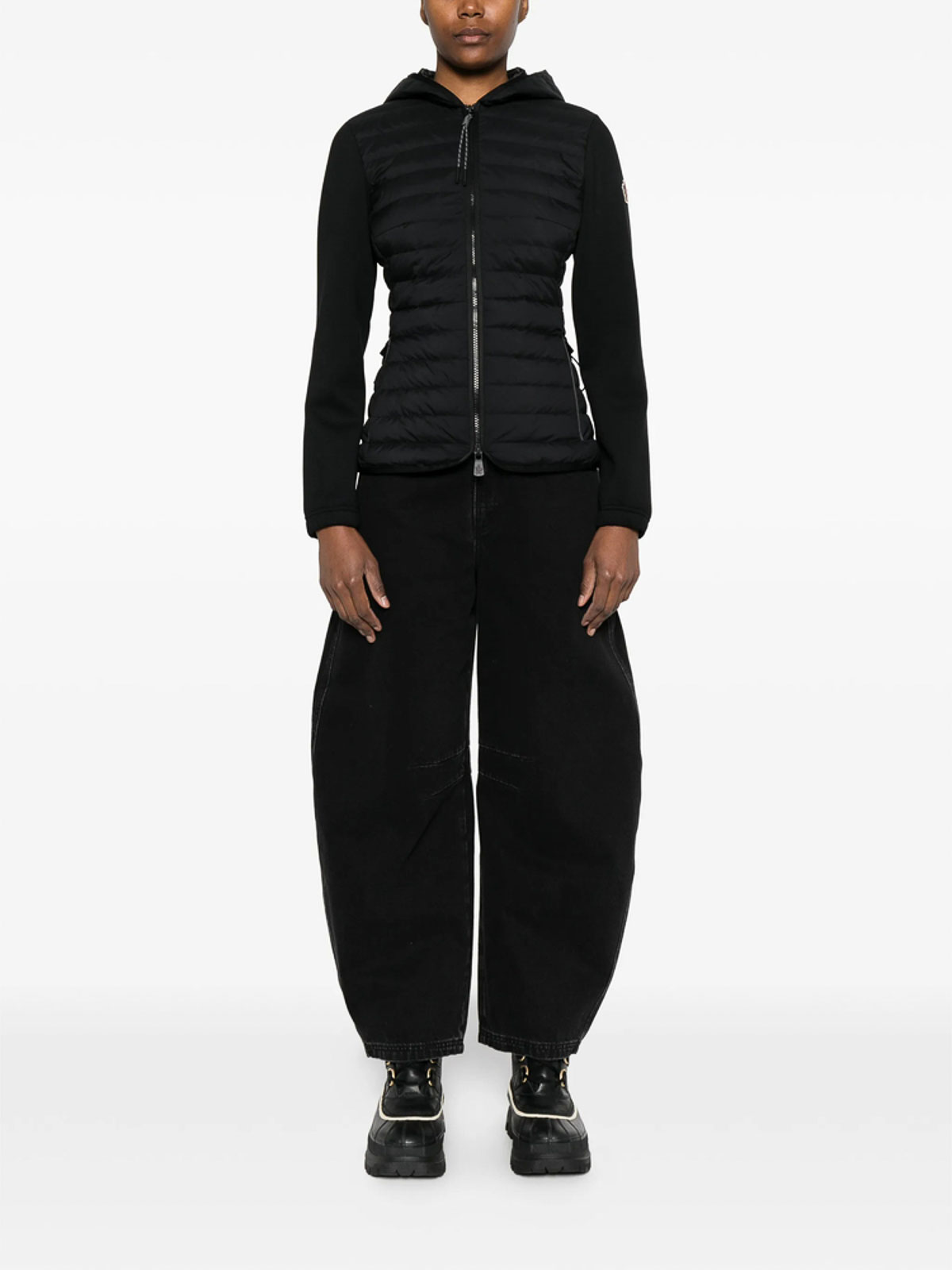 Black quilted front zip fastening hooded long sleeves front pockets