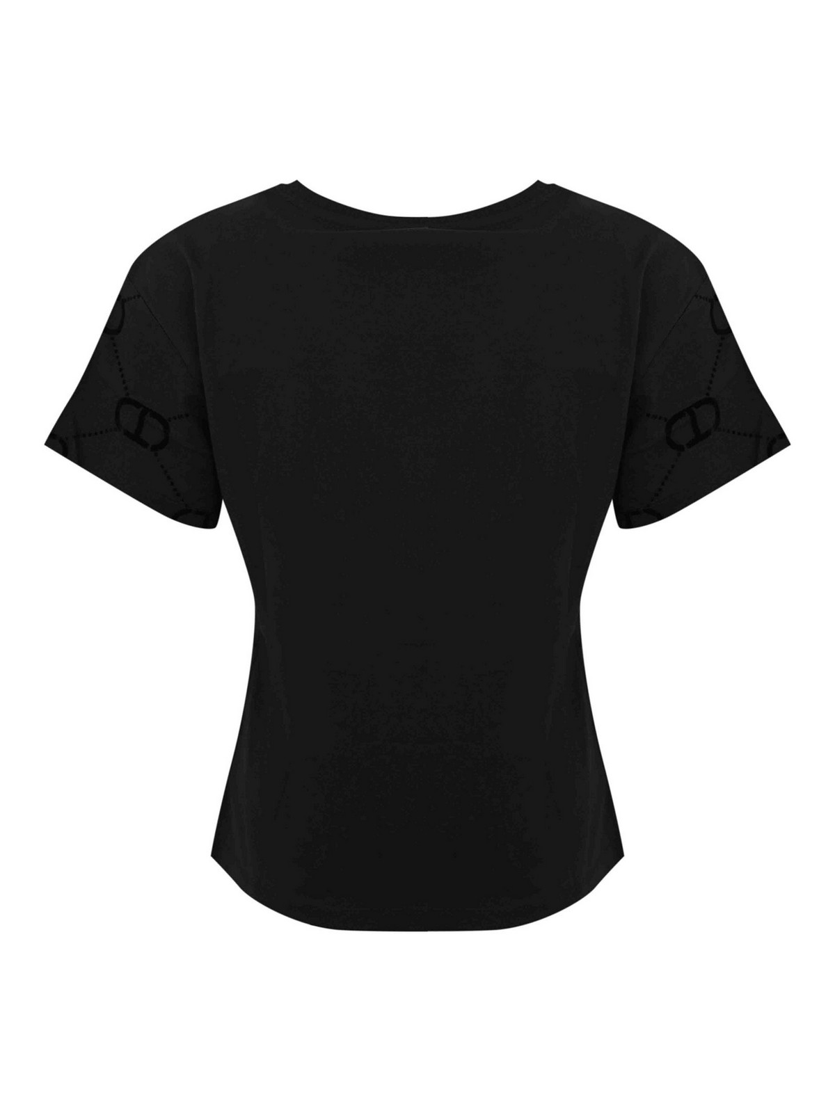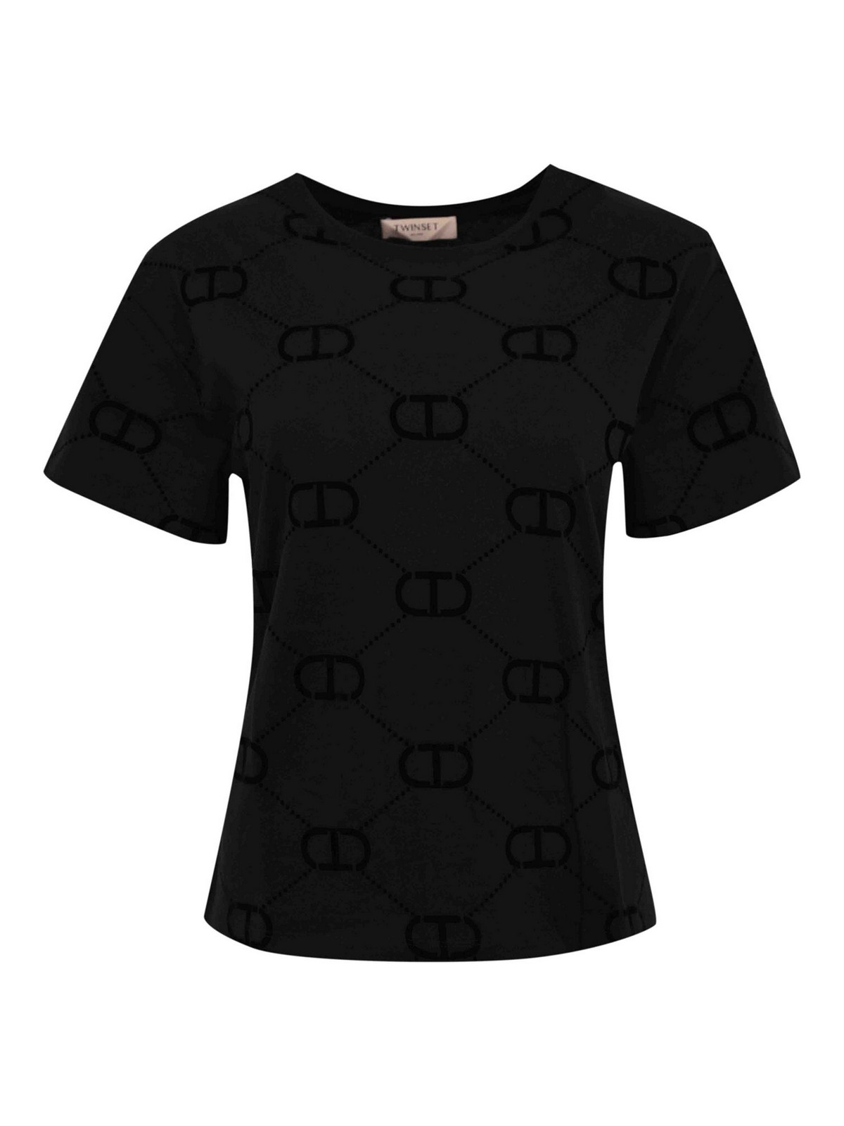 TWINSET: t-shirts - Oval-T Flock Print Cotton T-Shirt
