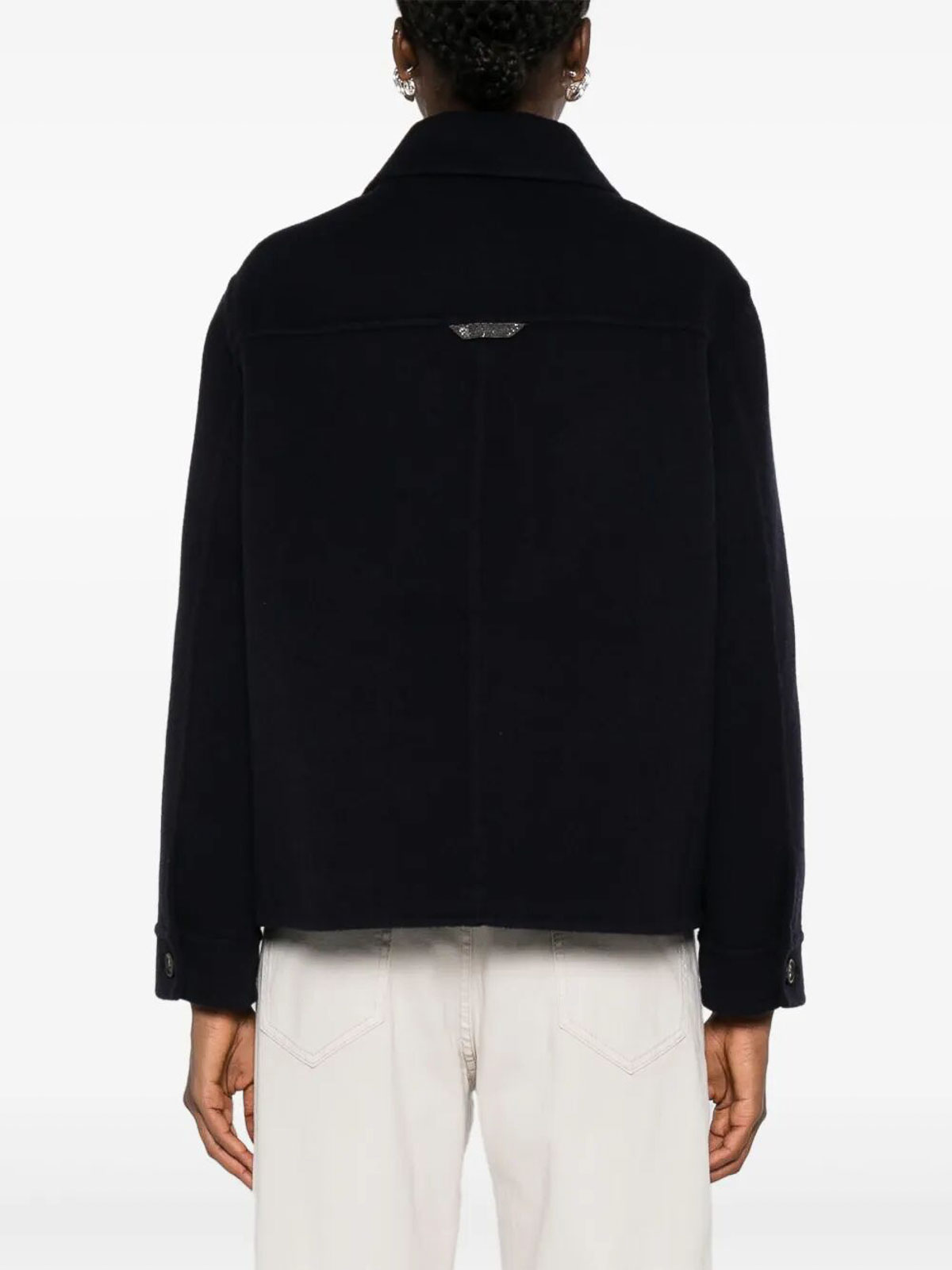 , front button closure, bellows pockets on the chest, long sleeves, buttoned cuffs