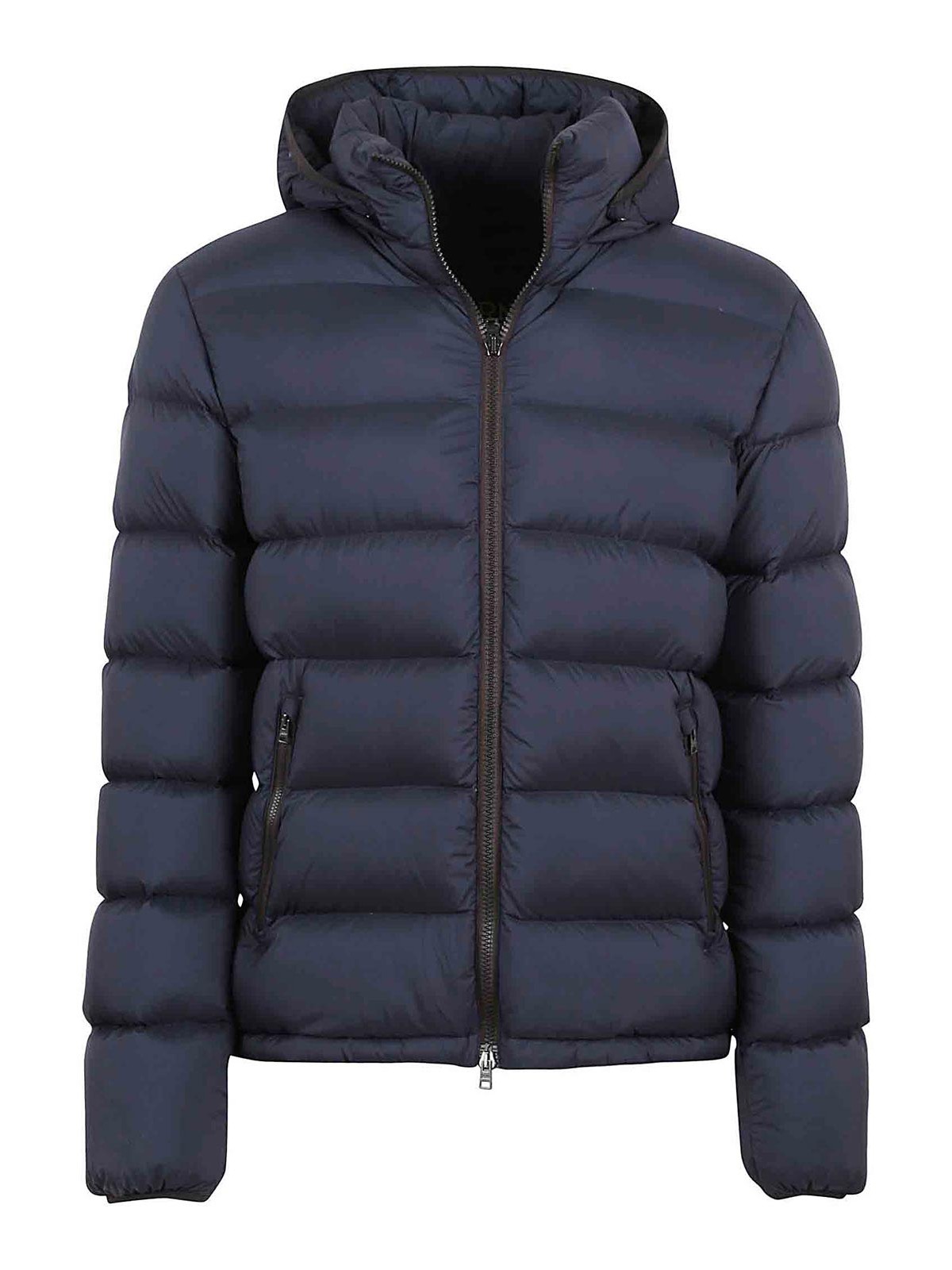 Nylon bomber jacket by Herno double slider zip closure welt pockets with zip removable hood fine goose down padding regular fit design