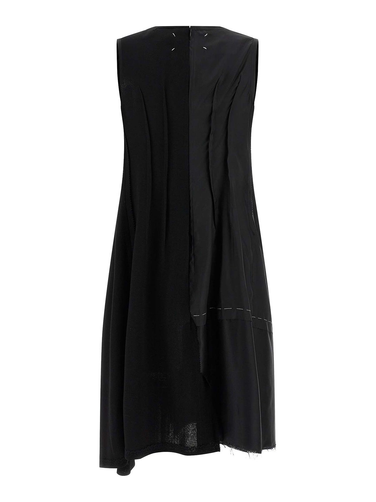 Midi dress with and panel construction with cape round neckline 'four stitches' and back zip sleeveless and asymmetrical hem