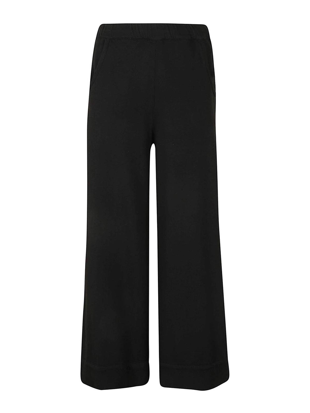 Trousers in brushed jersey, elastic waistband, slanted pockets at the bottom