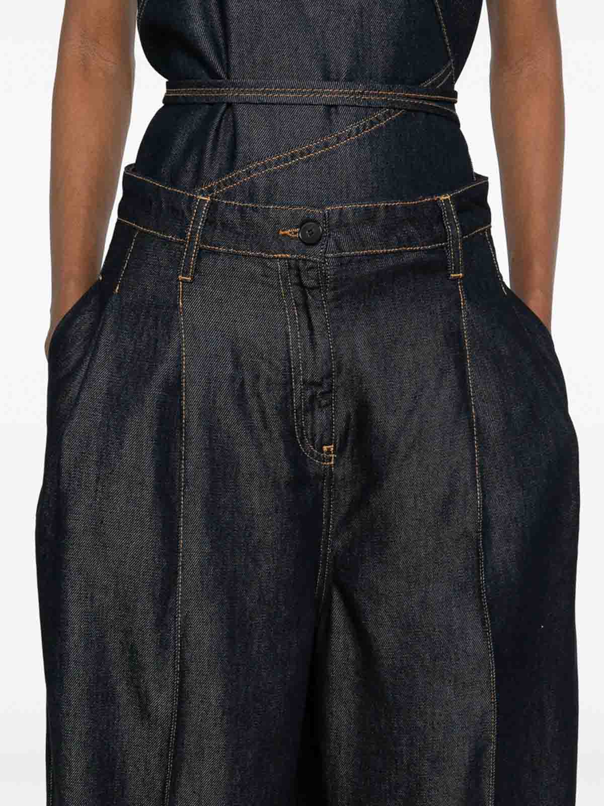 Denim blue pleated high-waisted seam detail topstitching