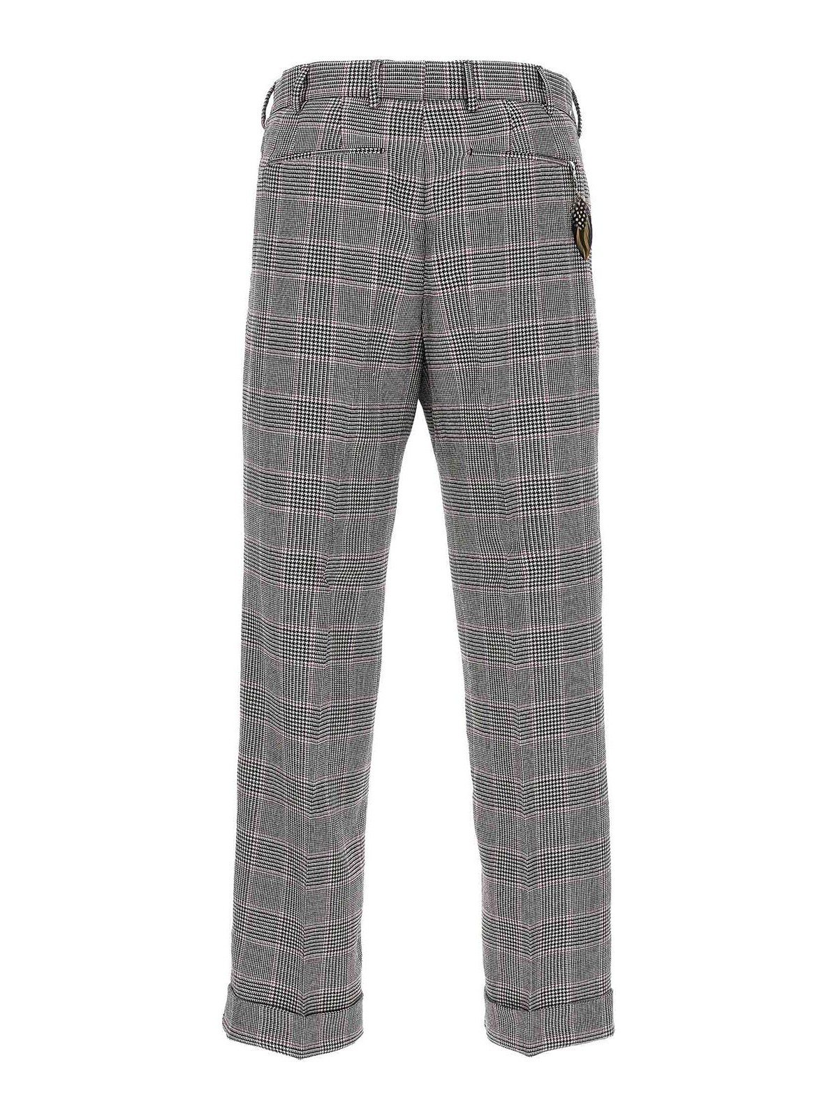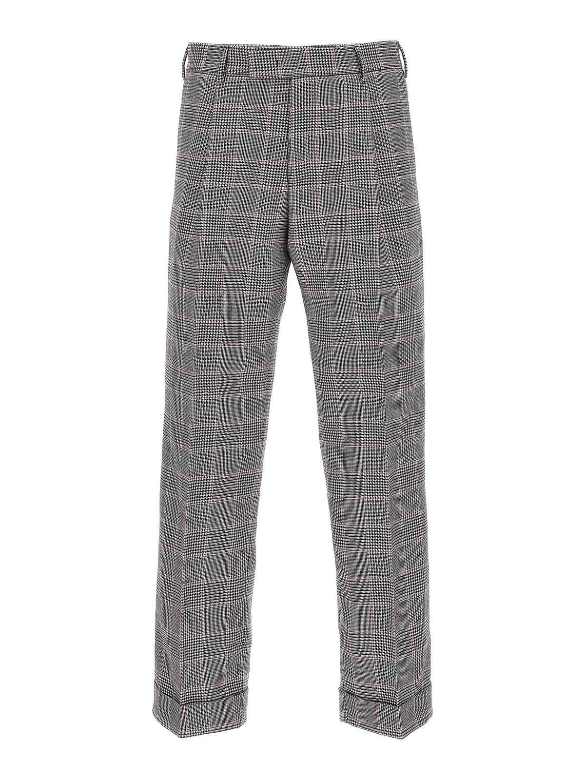 Prince of wales super 100s pants with hook and button zip central pleat and pleat pockets
