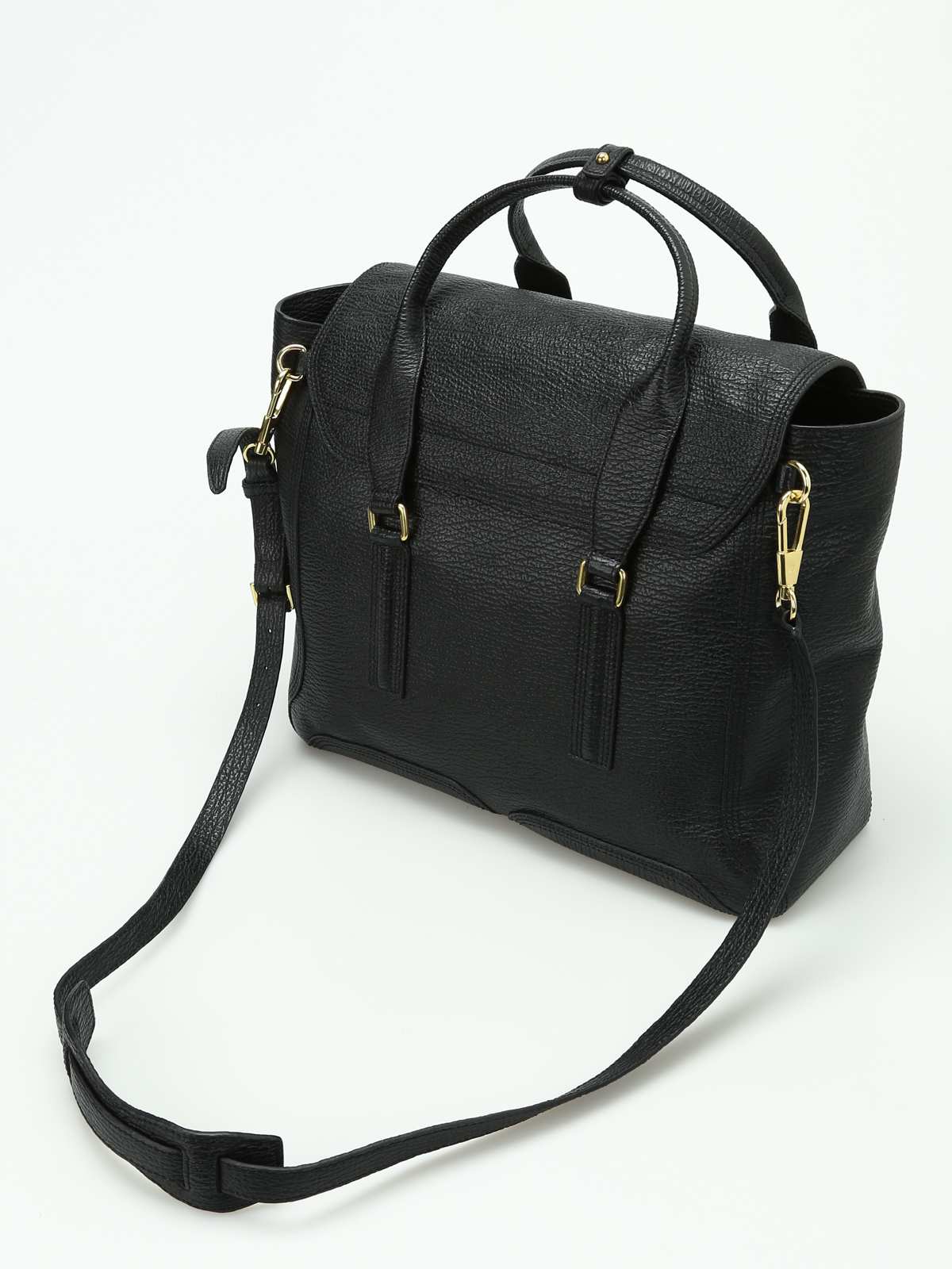 Crafted from sharkskin printed leather, this large carryall satchel features double handle with iconic adjustable loop and a useful adjustable and removable shoulder strap, top flap and push-lock padlock, signature zipped front gussets, inner zipped pocket. Gold-tone hardware. Dust bag included.