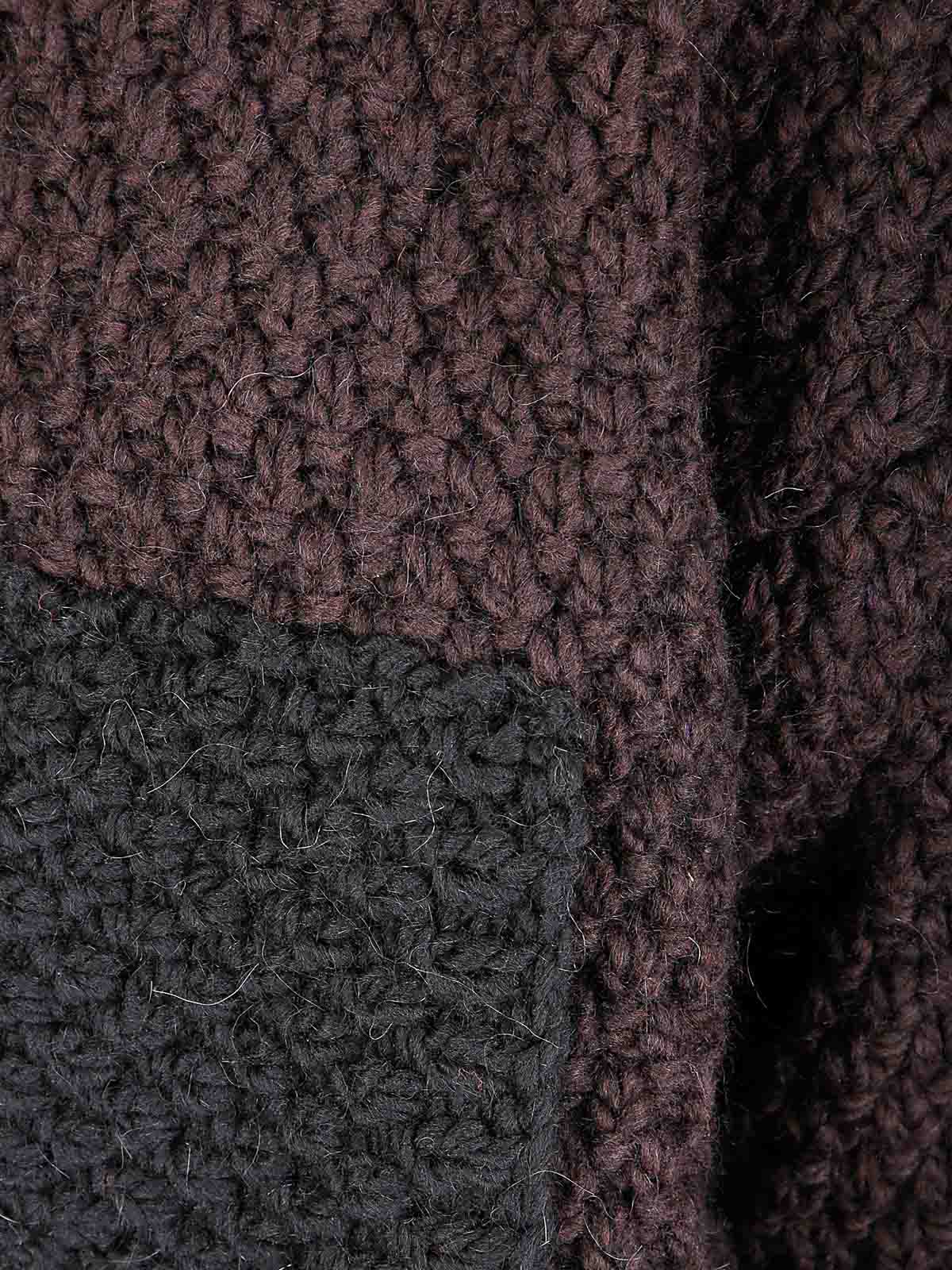 High collar wool jacket, zip fastening, two contrasting front pockets, back side made with different fabric.