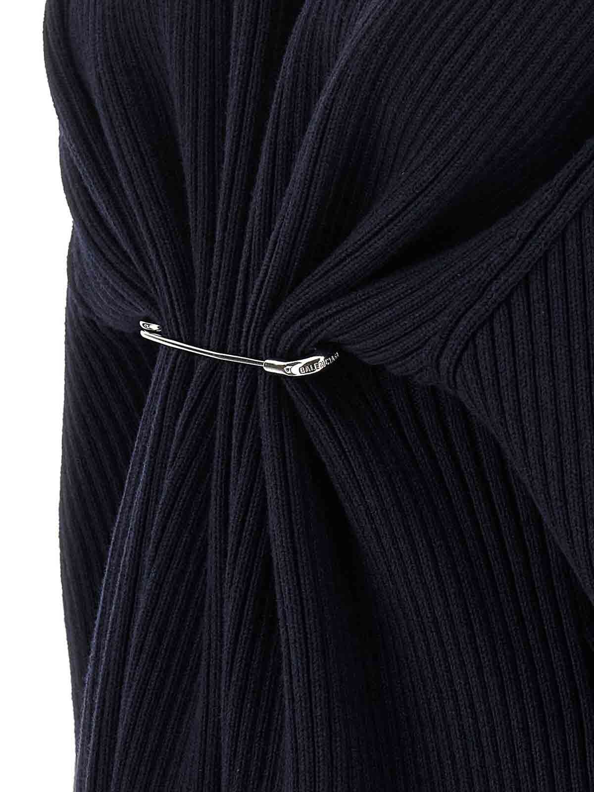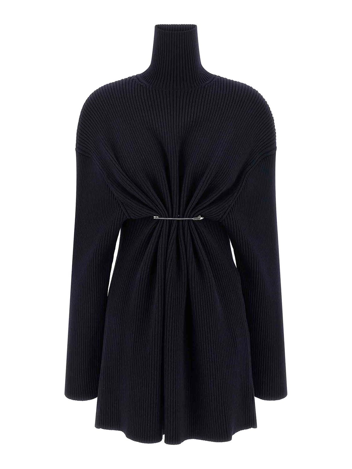 pinched' ribbed knit mini dress high neck with maxi safety pin long sleeves
