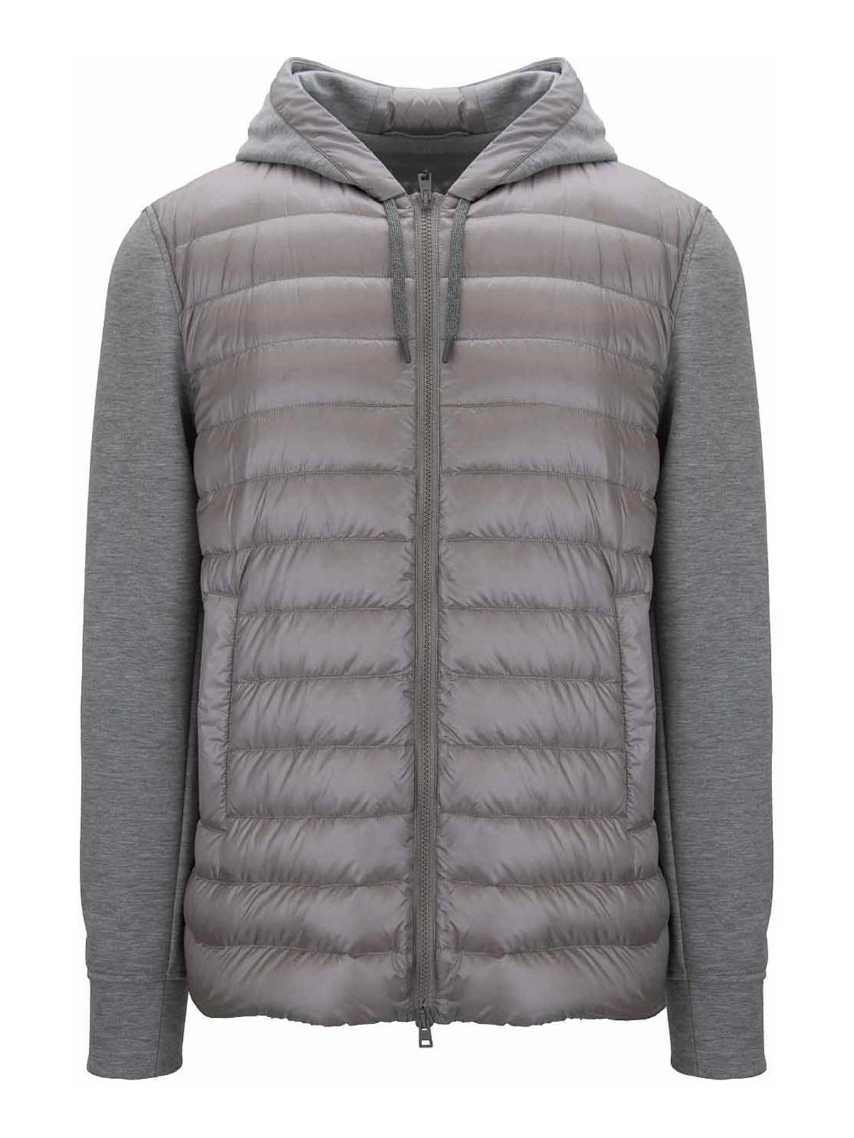 Piumino da uomo firmato herno. Main fabric and lining 100% in Poliamide. tessuto secondario realizzato 60% in poliestere e 40% in cotone. Packaging made 90% in duvet and 10% feather. piumino con cappuccio, regolabile tramite lacci, a maniche lunghe. tasche laterali sul davanti con chiusura tramite bottone automatico. It presents, with hooded height, logo hardware made of silver metal. Double cursor zipper closure.