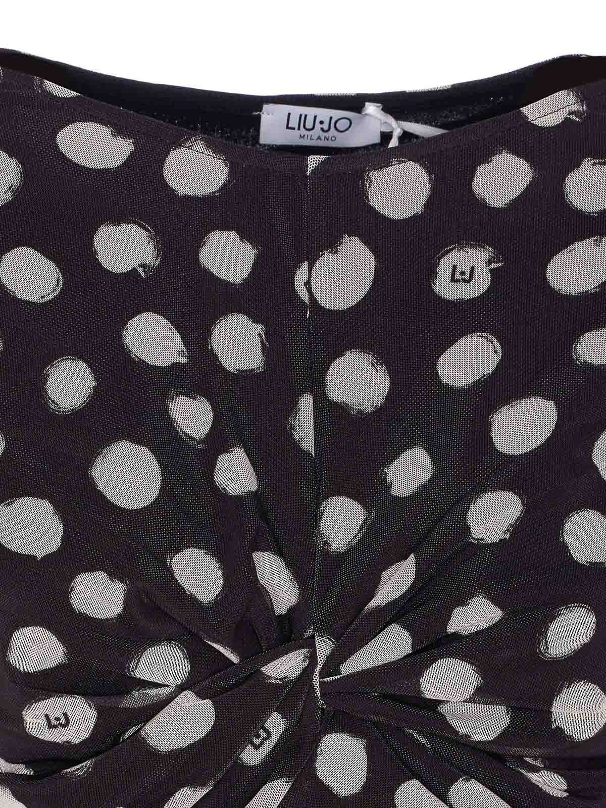 Liu jo black and white t-shirt, crewneck, ruched, polka dots pattern, logo allover