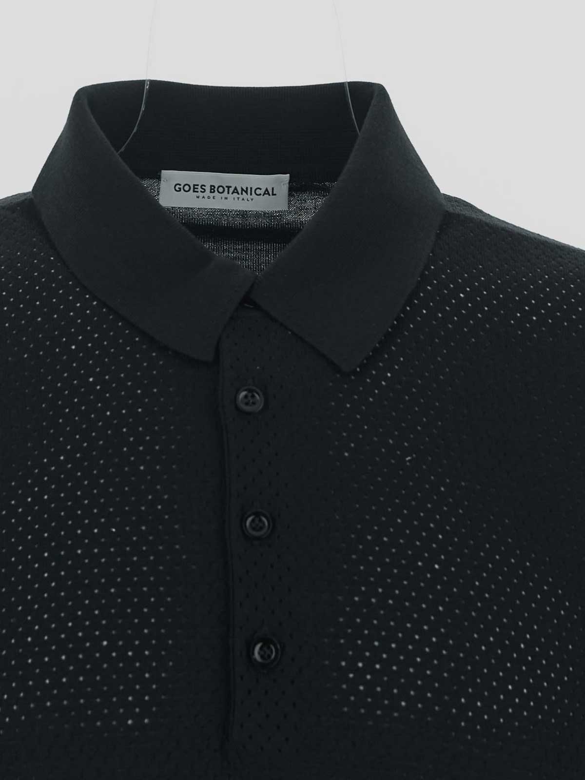 Goes botanical perforated polo shirt in black superfine wool