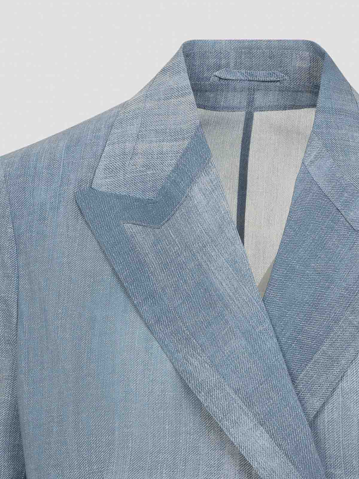 Ermanno scervino blue polyester blazer. double-breasted jacket crafted from blue denim-print chiffon, featuring peak lapels, a front button fastening, two front flap pockets, long sleeves with buttoned cuffs, and a straight hem.