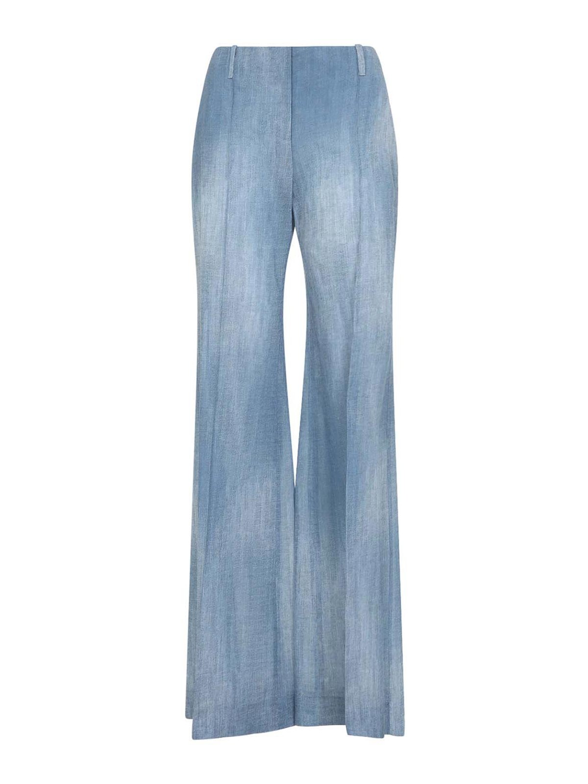 Ermanno scervino blue polyester pants. crafted from blue denim-print chiffon, featuring a high waist, belt loops, a front concealed fastening, side pockets, and wide legs.