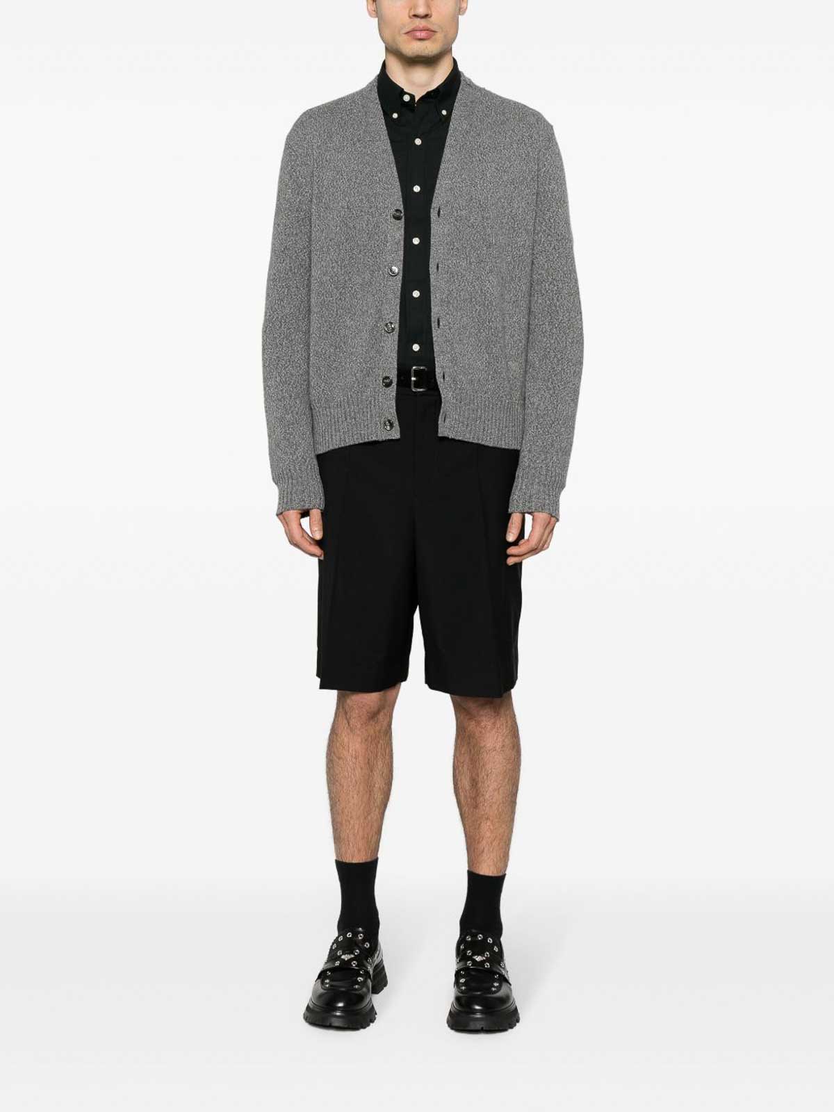 Elasticized black cluttered collar, long sleeves cuffs with firm button pony pole on the front rim front rim with buttons