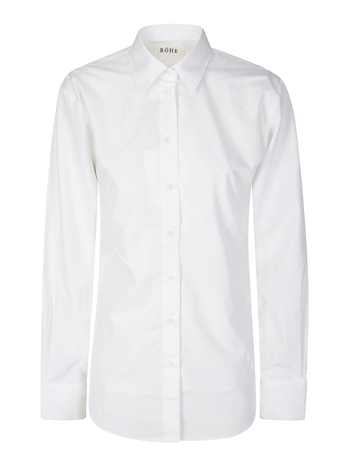 Lightweight cotton shirt with super slim waist, long sleeves with two buttons, small collar.