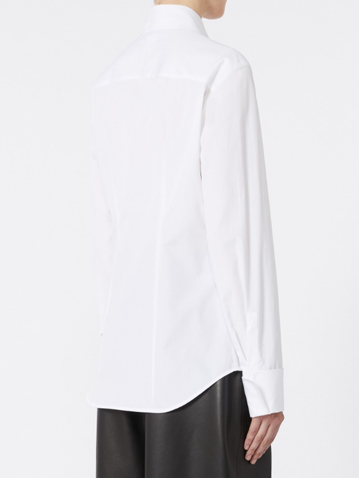 White poplin shirt pointed collar long set-in sleeves with cufflinks front closure with covered buttons
