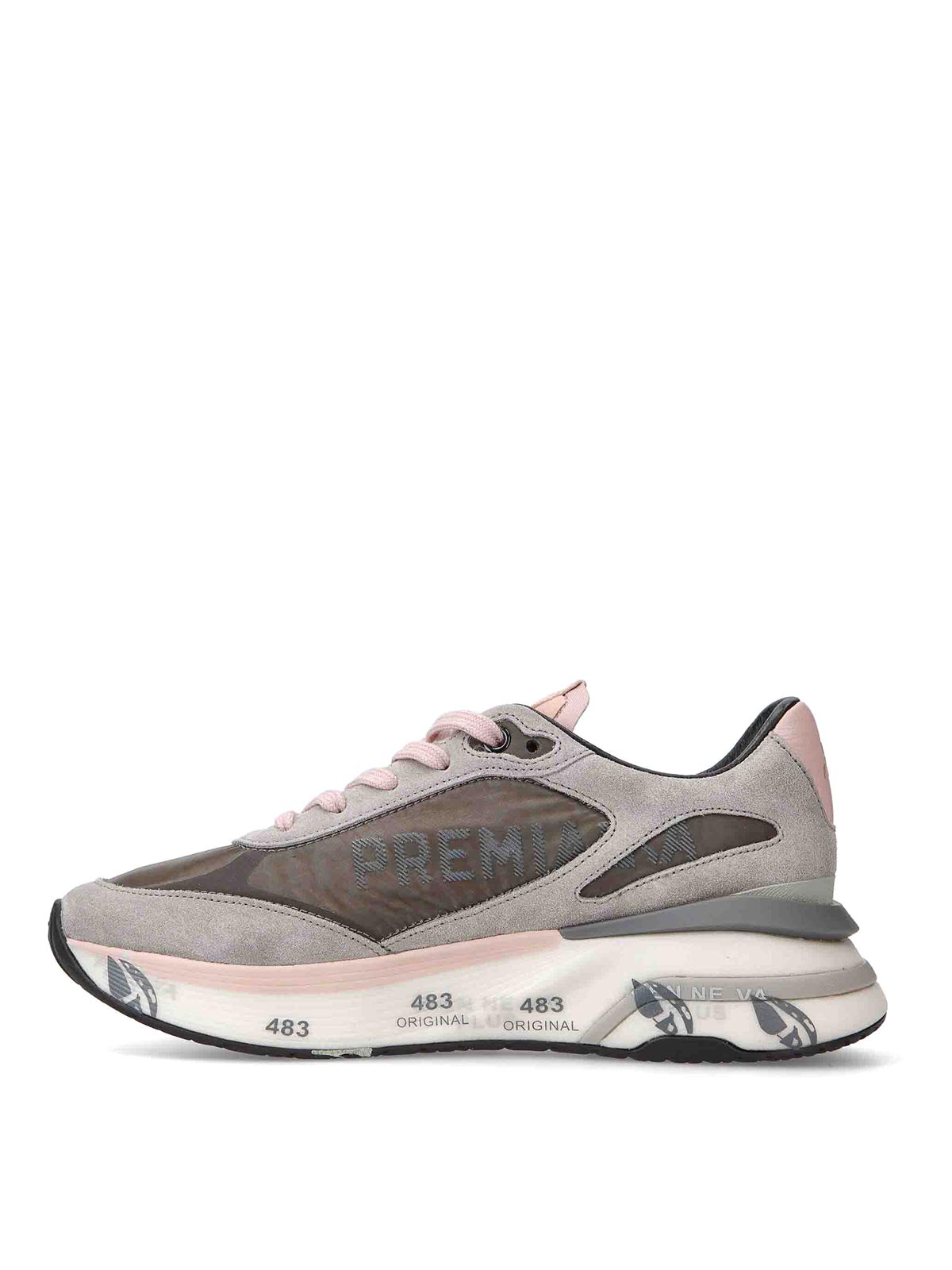 Premiata sneakers in suede leather and logo print on the back with front round toe designs with laces and chunky