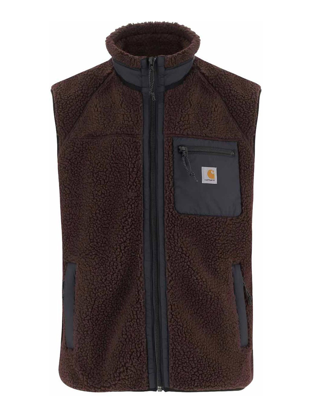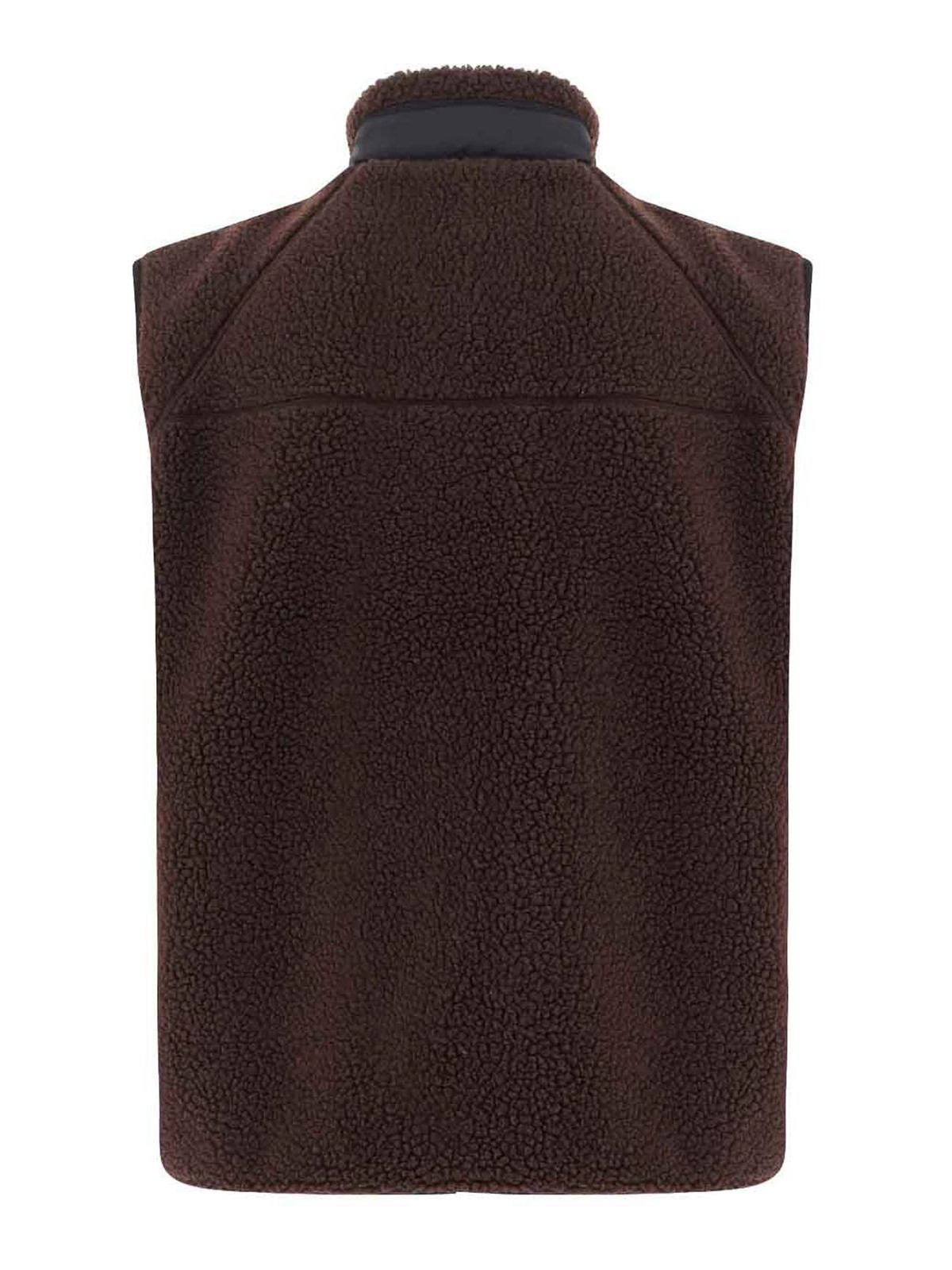 brown, mesh lining, nylon taffeta details, front fastening, side pockets and chest pocket with zip, square label