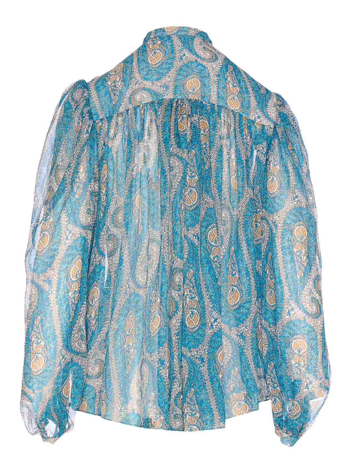 Etro light blue paisley shirt with frontal buttons closure, crewneck, long sleeves, button on cuffs