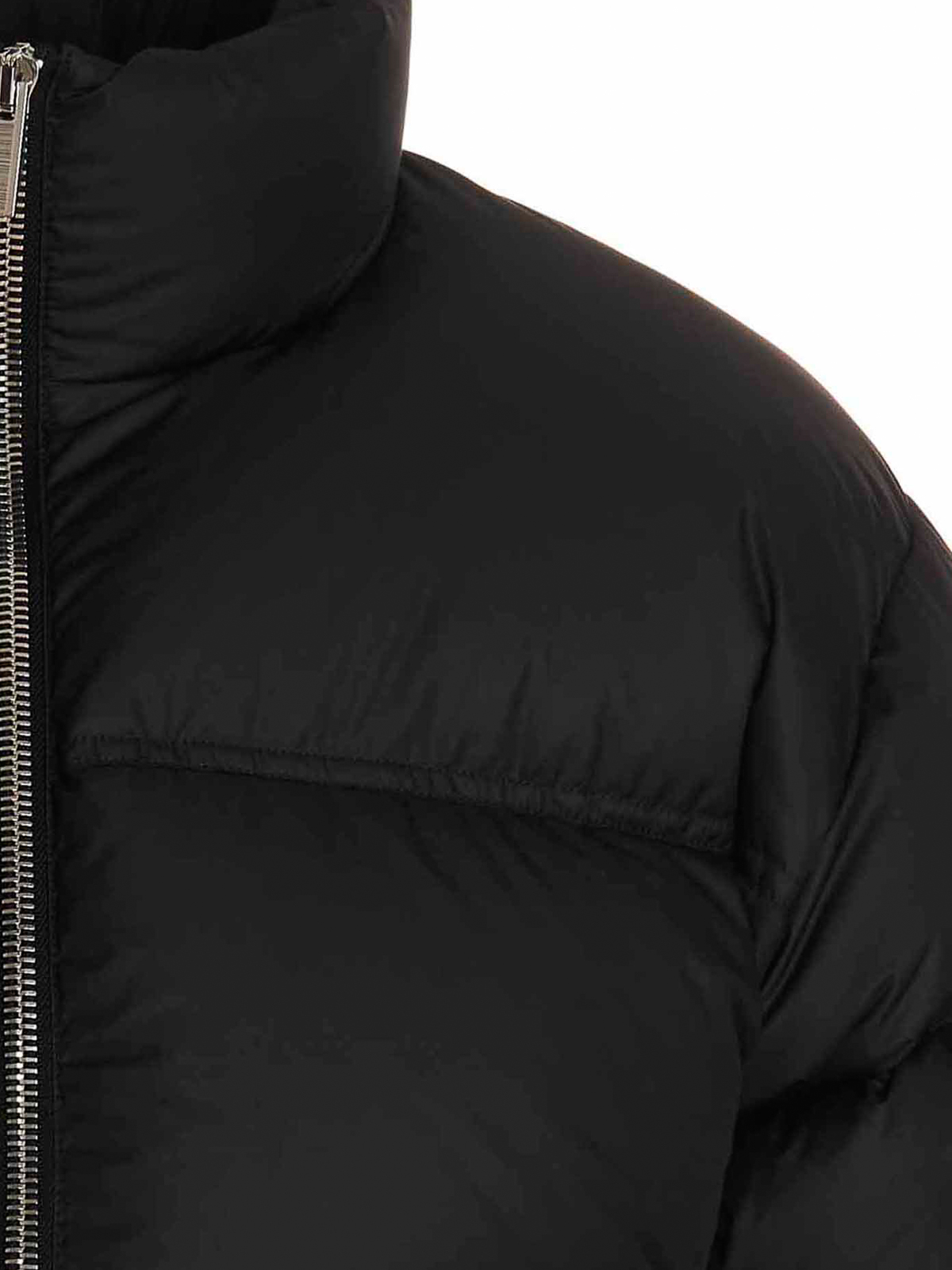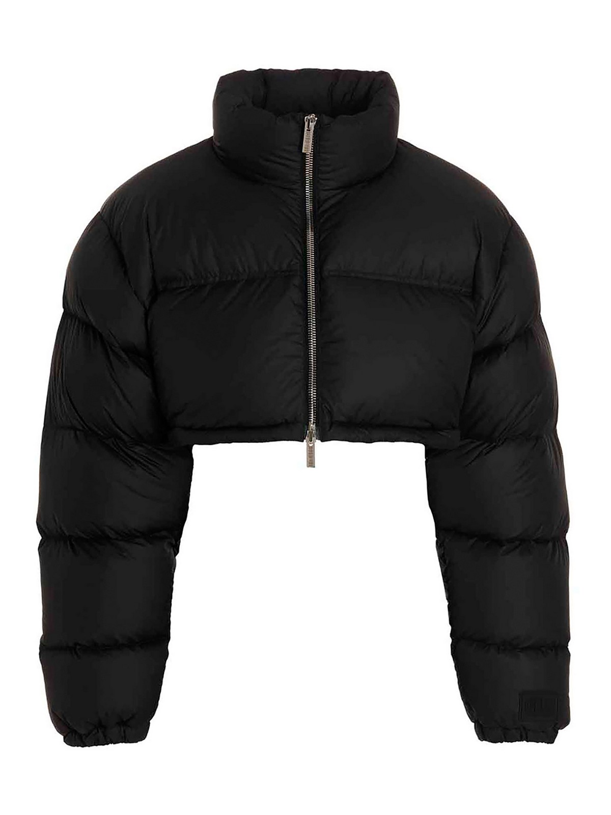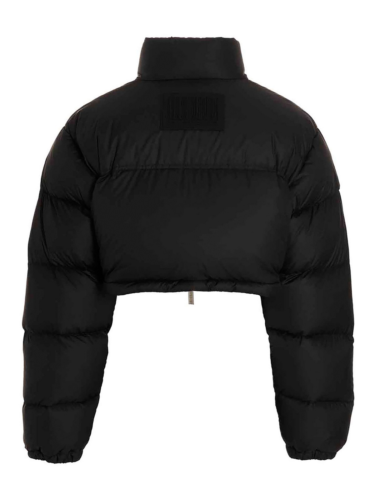puffer' nylon jacket with feather padding cropped length zip closure tonal rubber logo patch zip closure high neck long sleeves with elastic cuffs adjustable drawstring at the hem