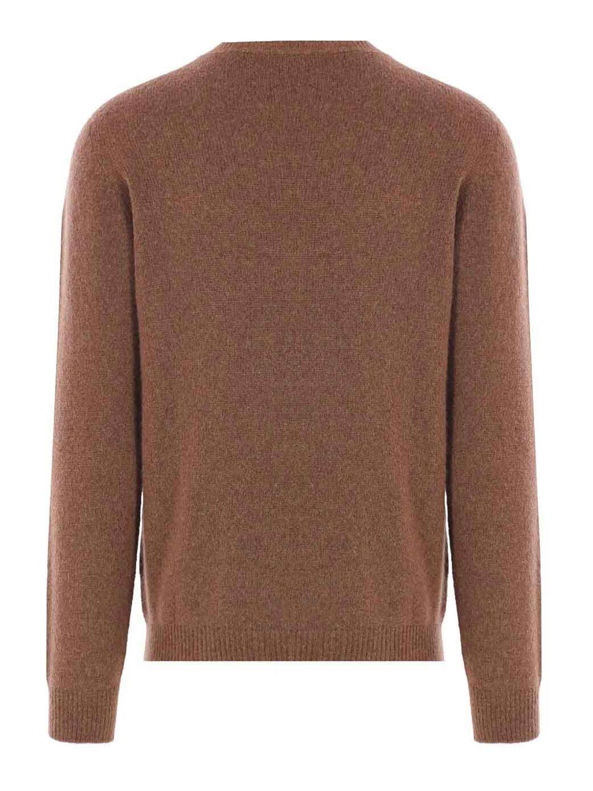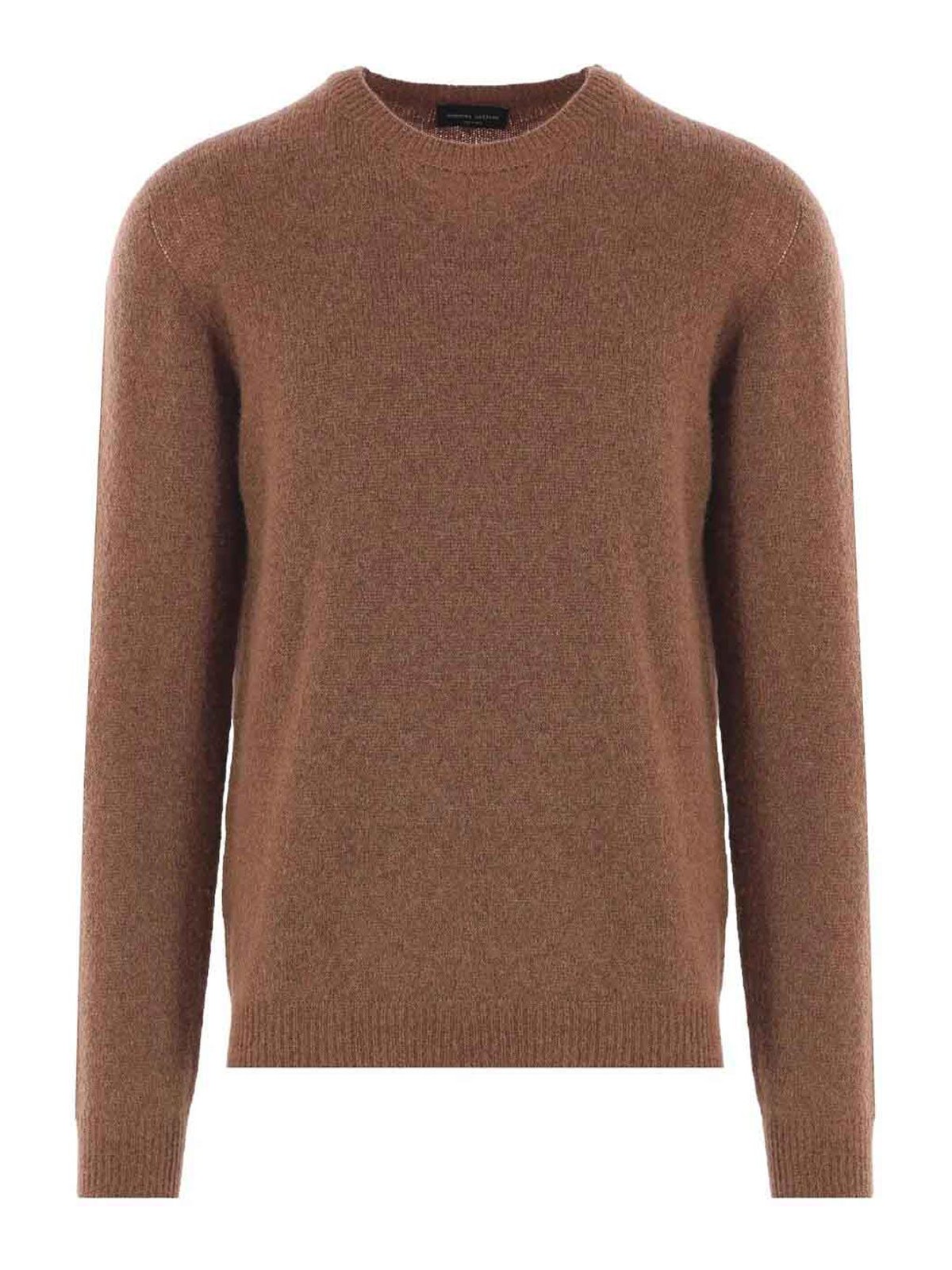 Roberto Collina virgin wool blend crewneck sweater, camel color, ribbed edges.