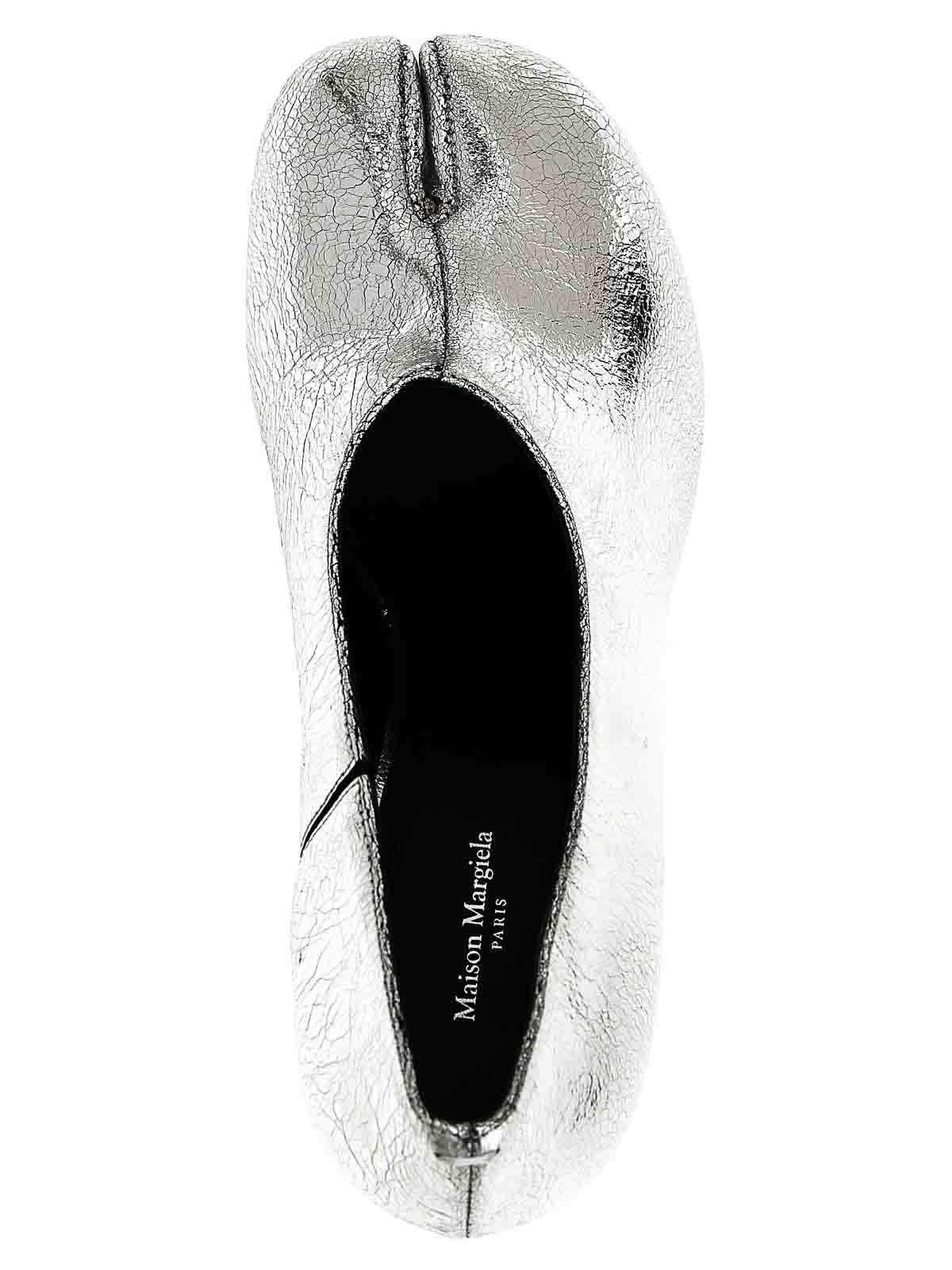 tabi' pumps in soft nappa leather with broken mirror finish, iconic 'tabi' split toe, lace instep, cylindrical heel, leather sole.