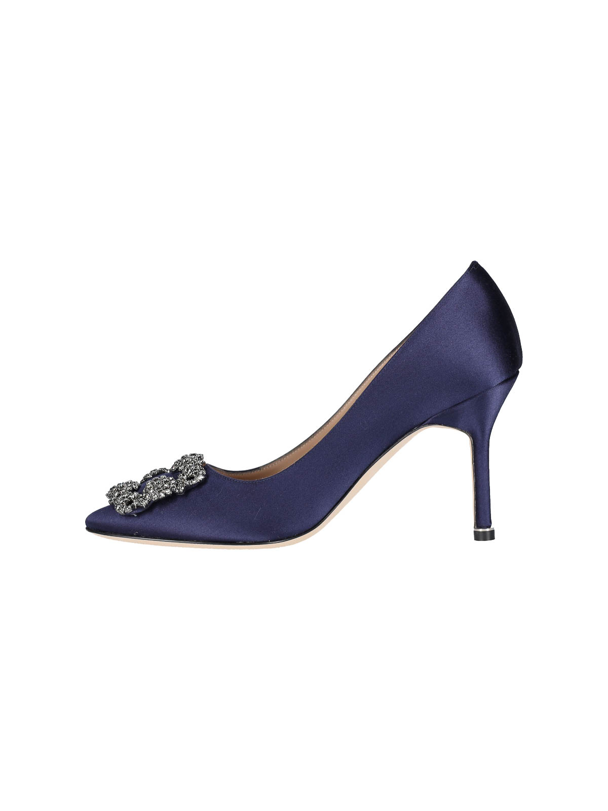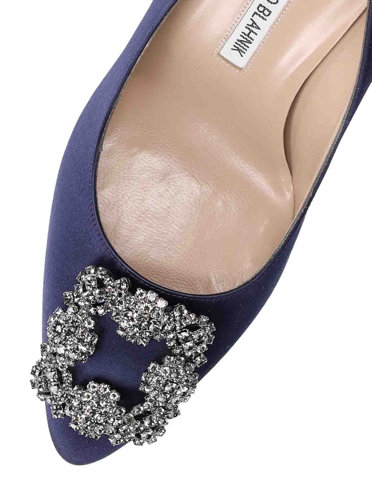 Manolo blahnik hangisi pump in purple satin with frontal jeweled leather stiletto point