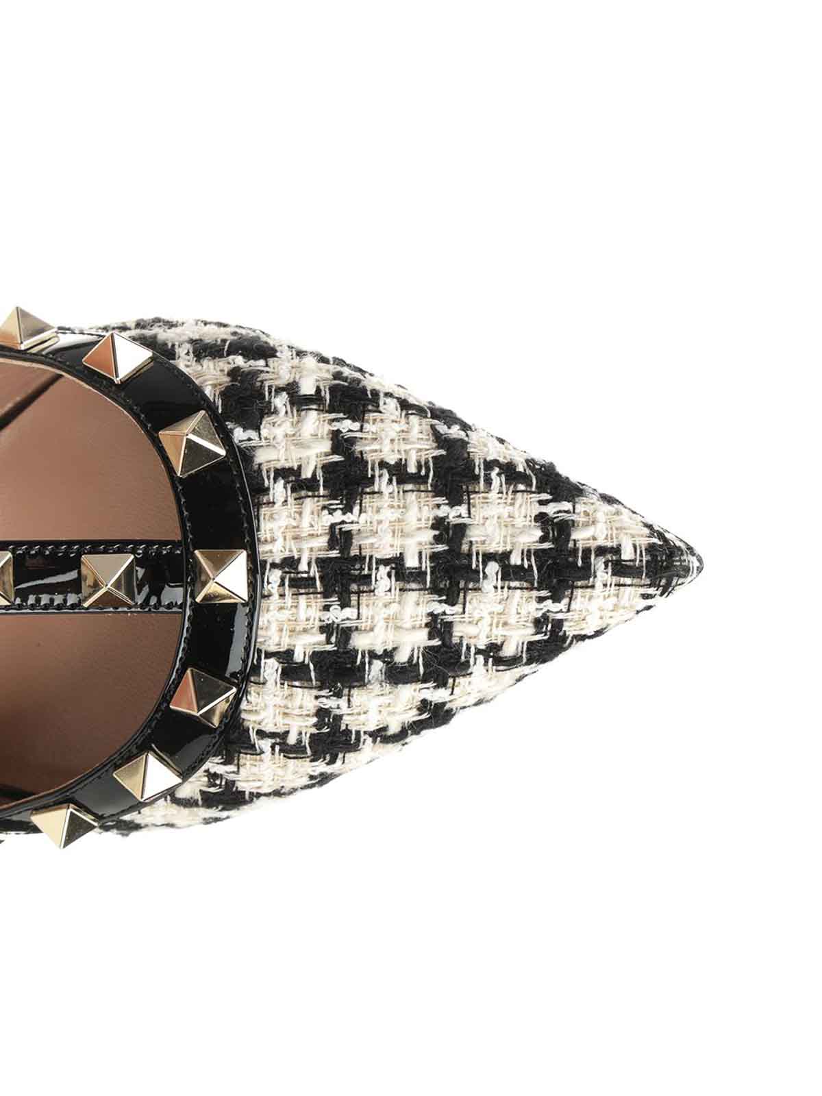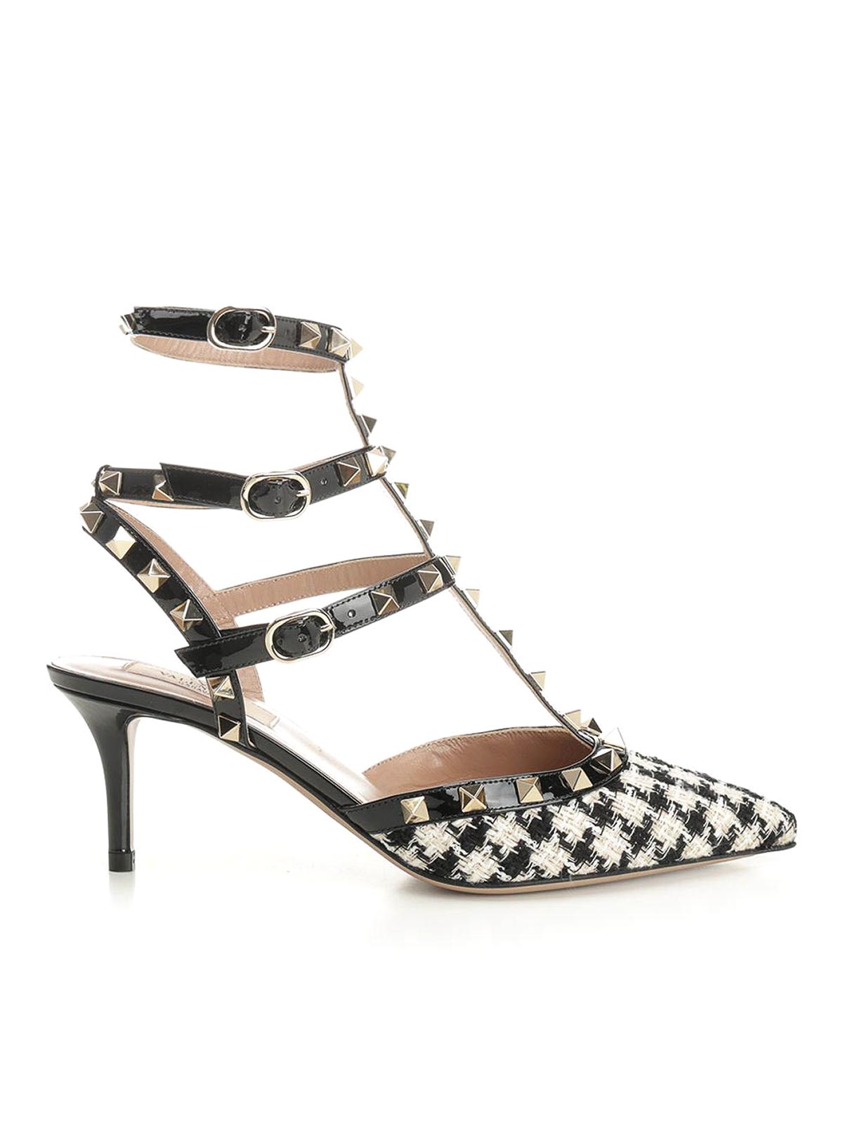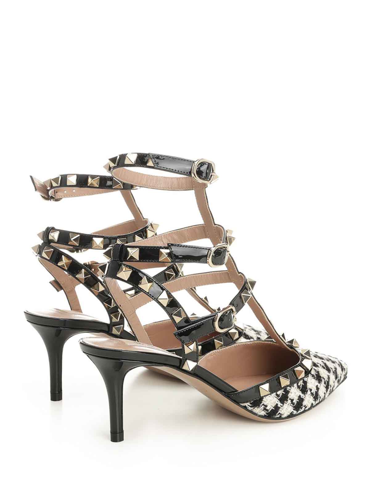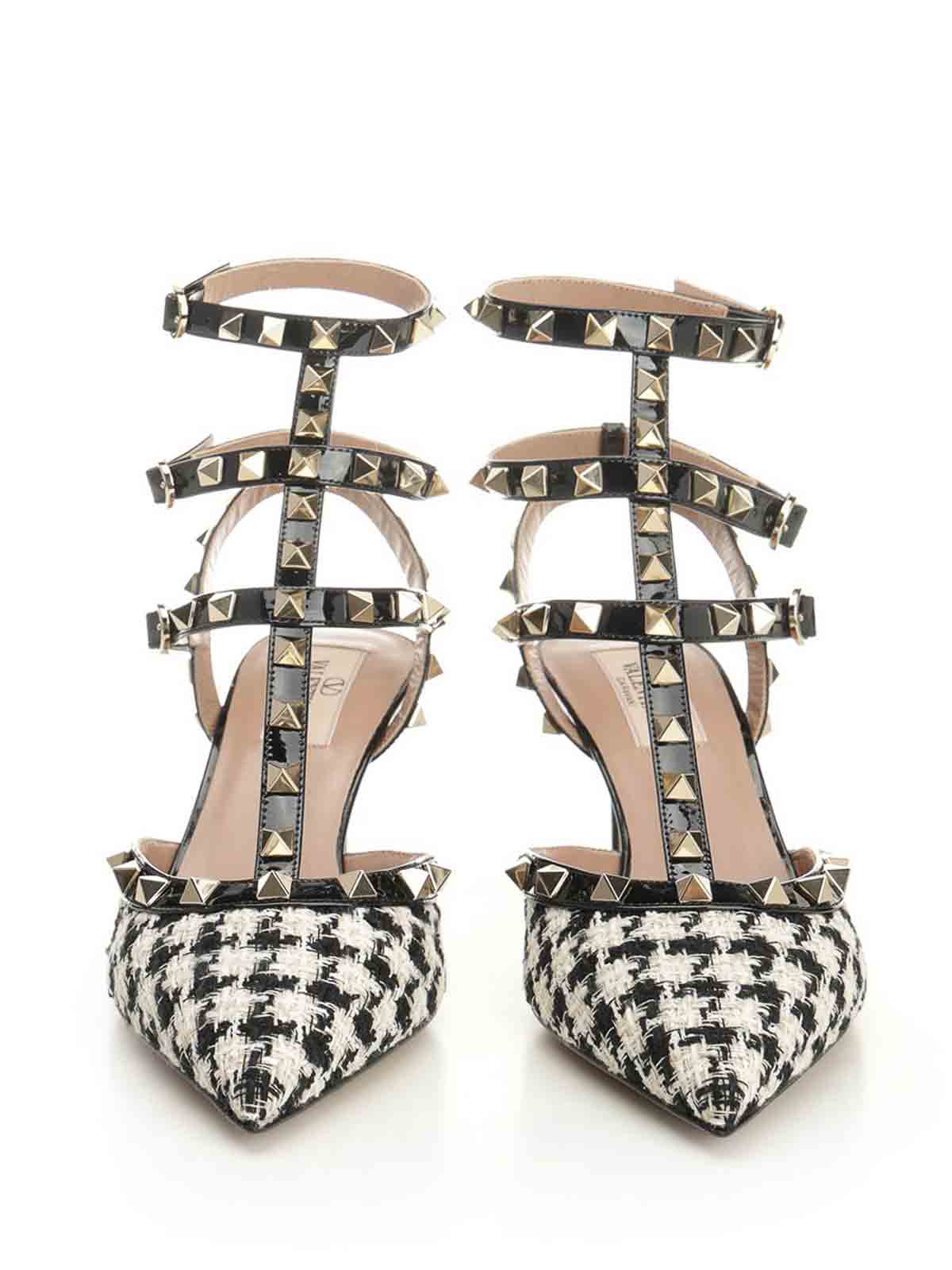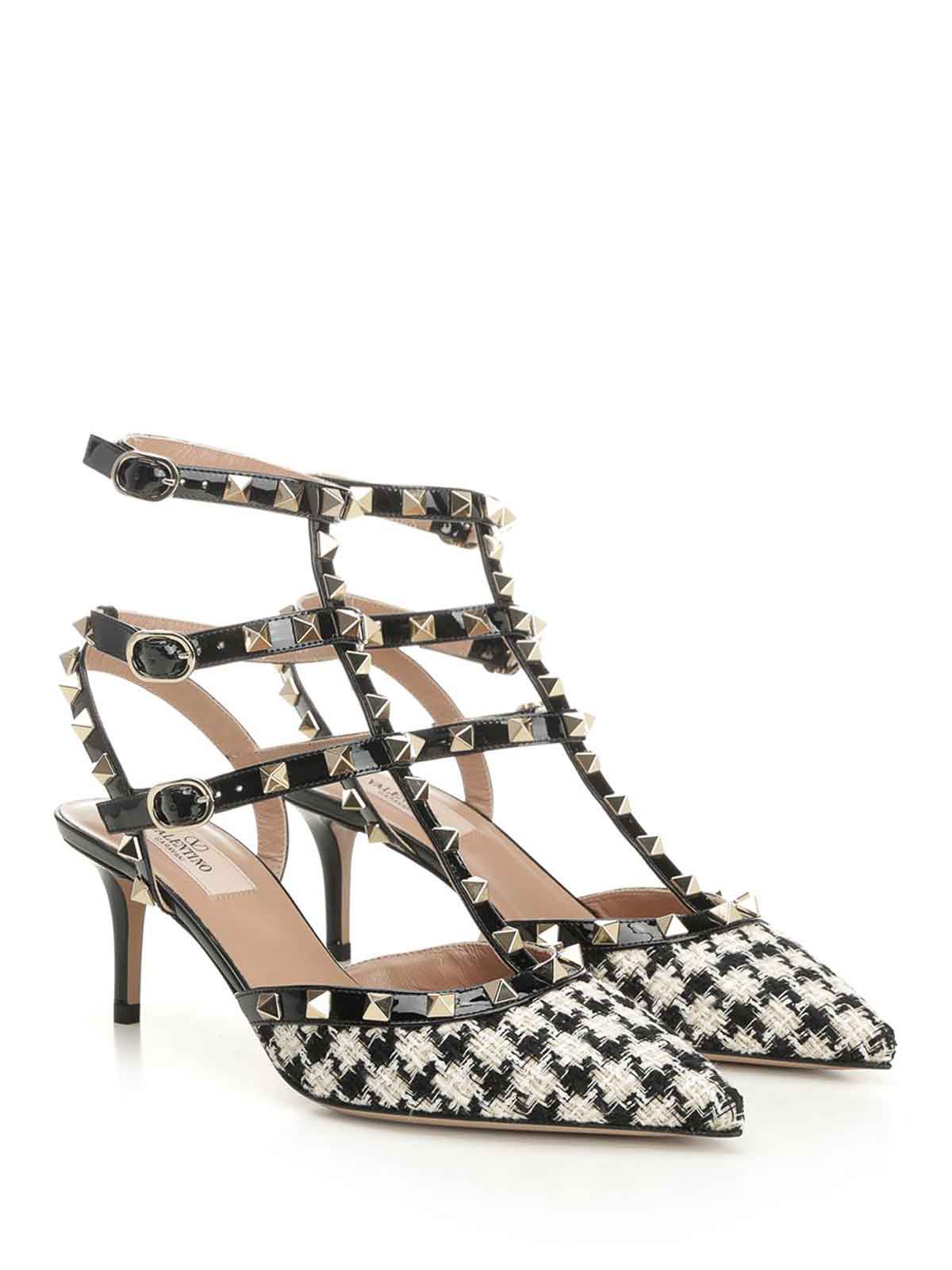 Valentino garavani rockstud pumps in houndstooth fabric, with platinum-finish studs, adjustable straps and calfskin trims.