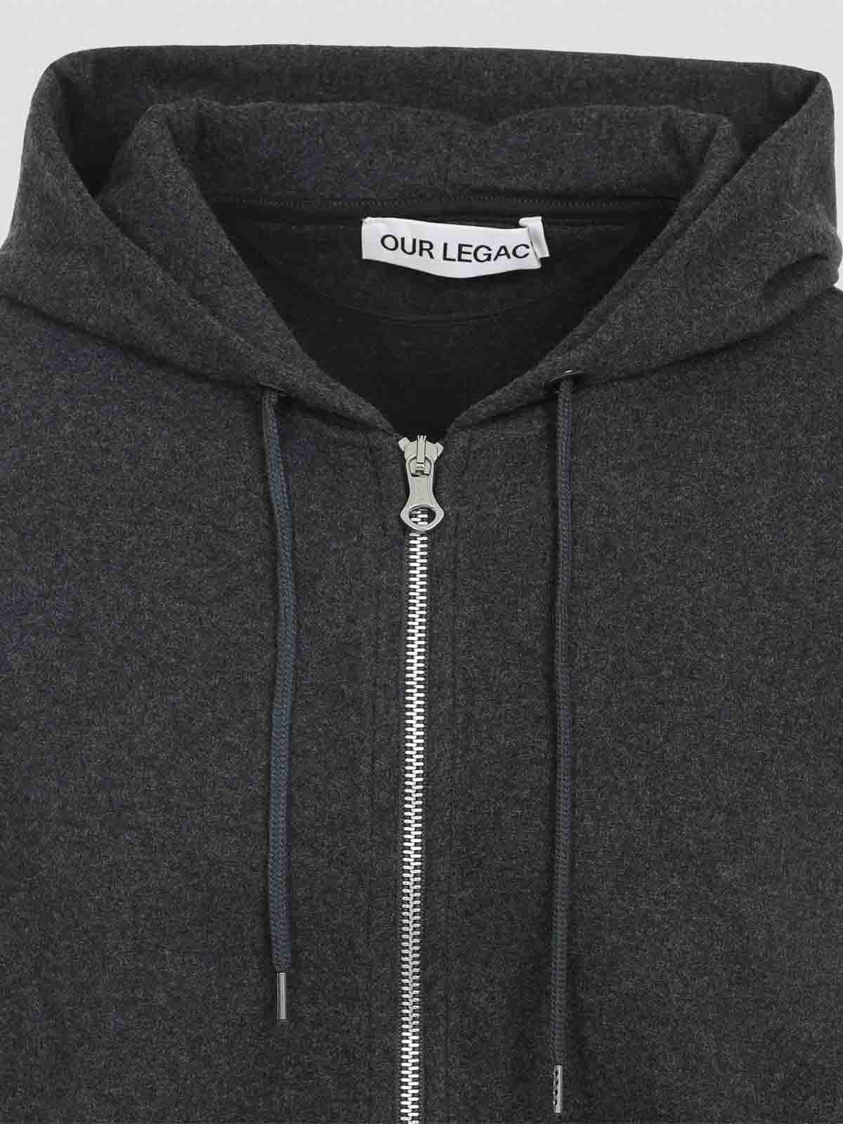 Our legacy charcoal grey rascal hoodie crafted and blend tonal hood drawstring zipped side pockets long sleeves ribbed cuffs and hem straight hem
