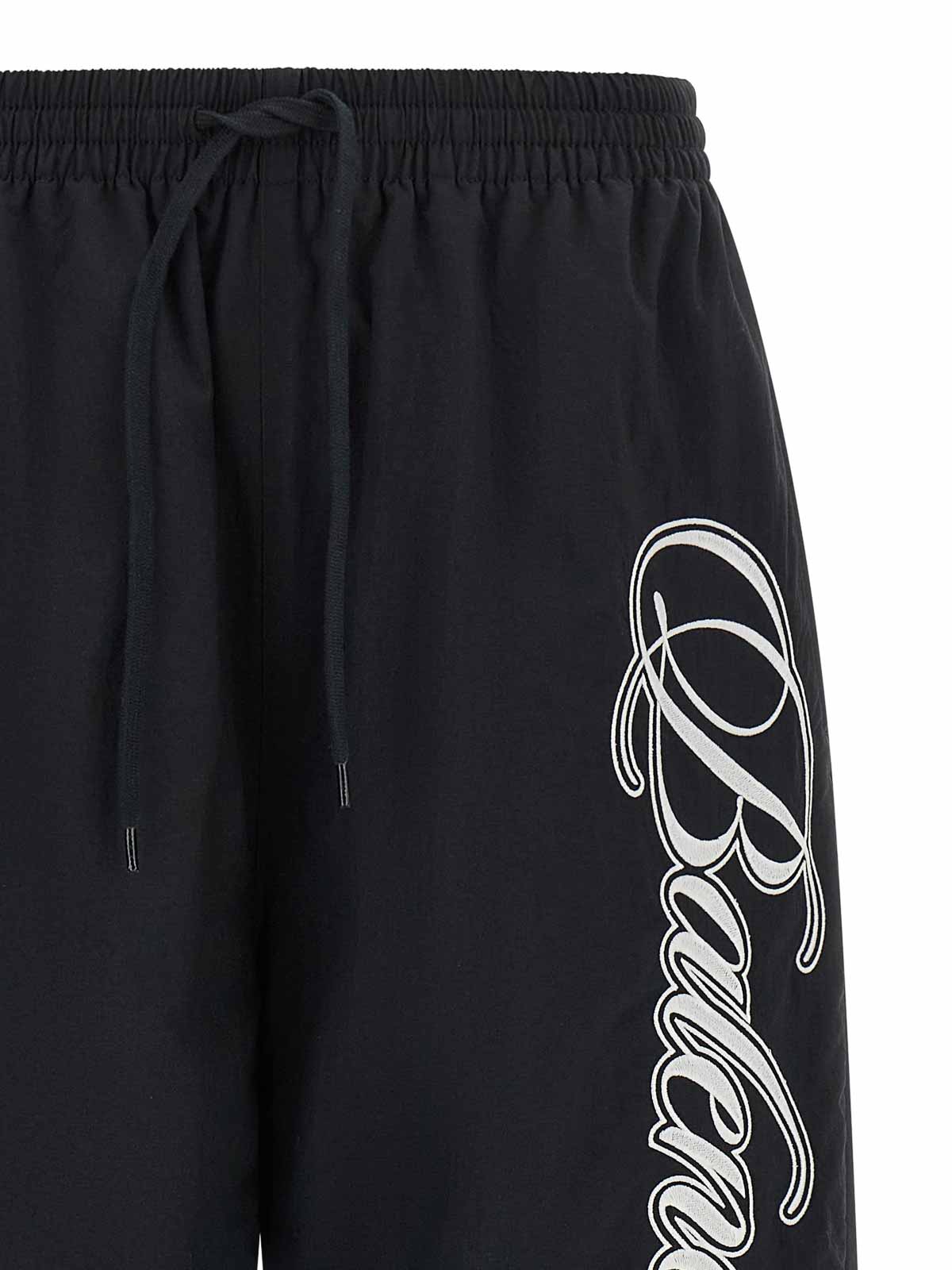 Reversible pants in nylon tracksuit canvas and dry fleece, front 'cursive' embroidery, straight leg, drawstring elastic waistband, pockets.
