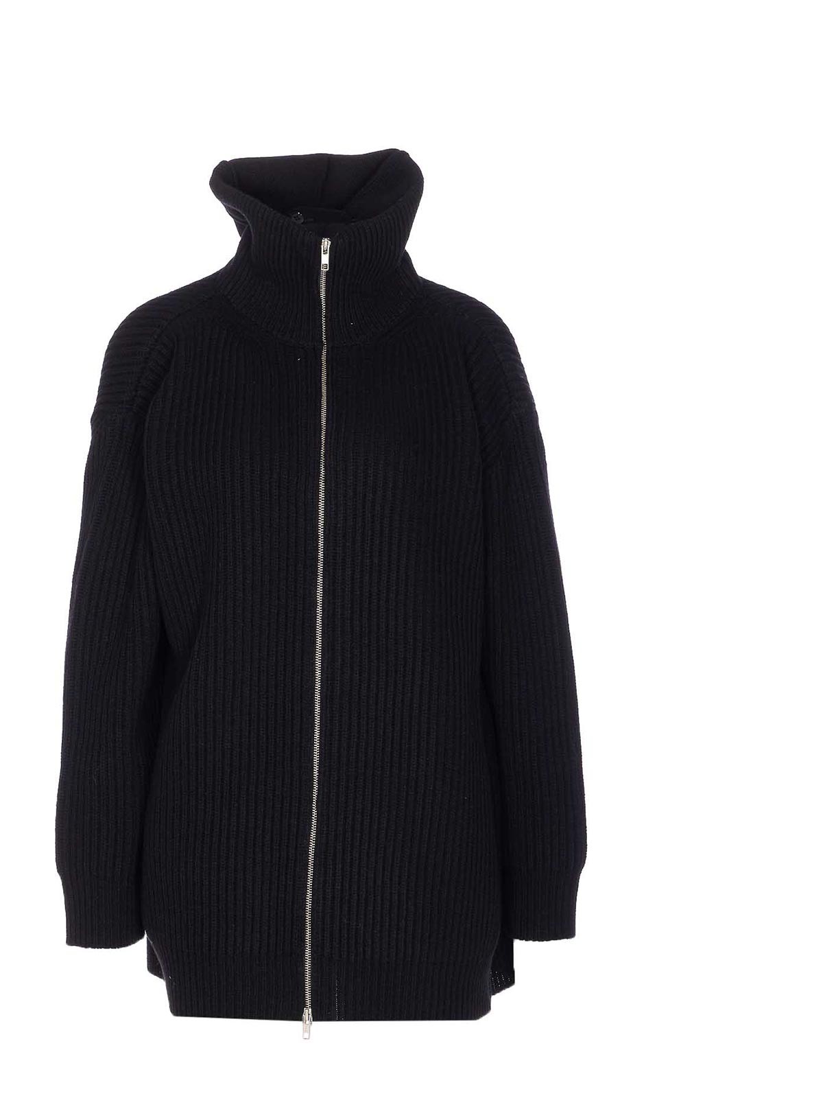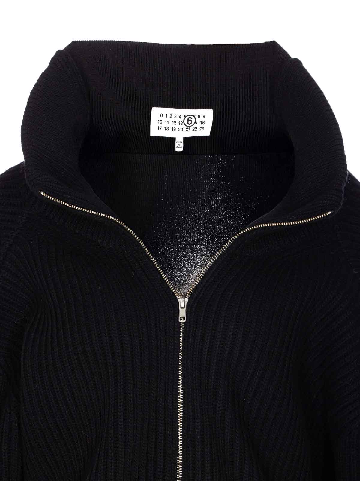 Mm6 maison margiela black knitted jacket with frontal zip closure, long sleeves, high neck