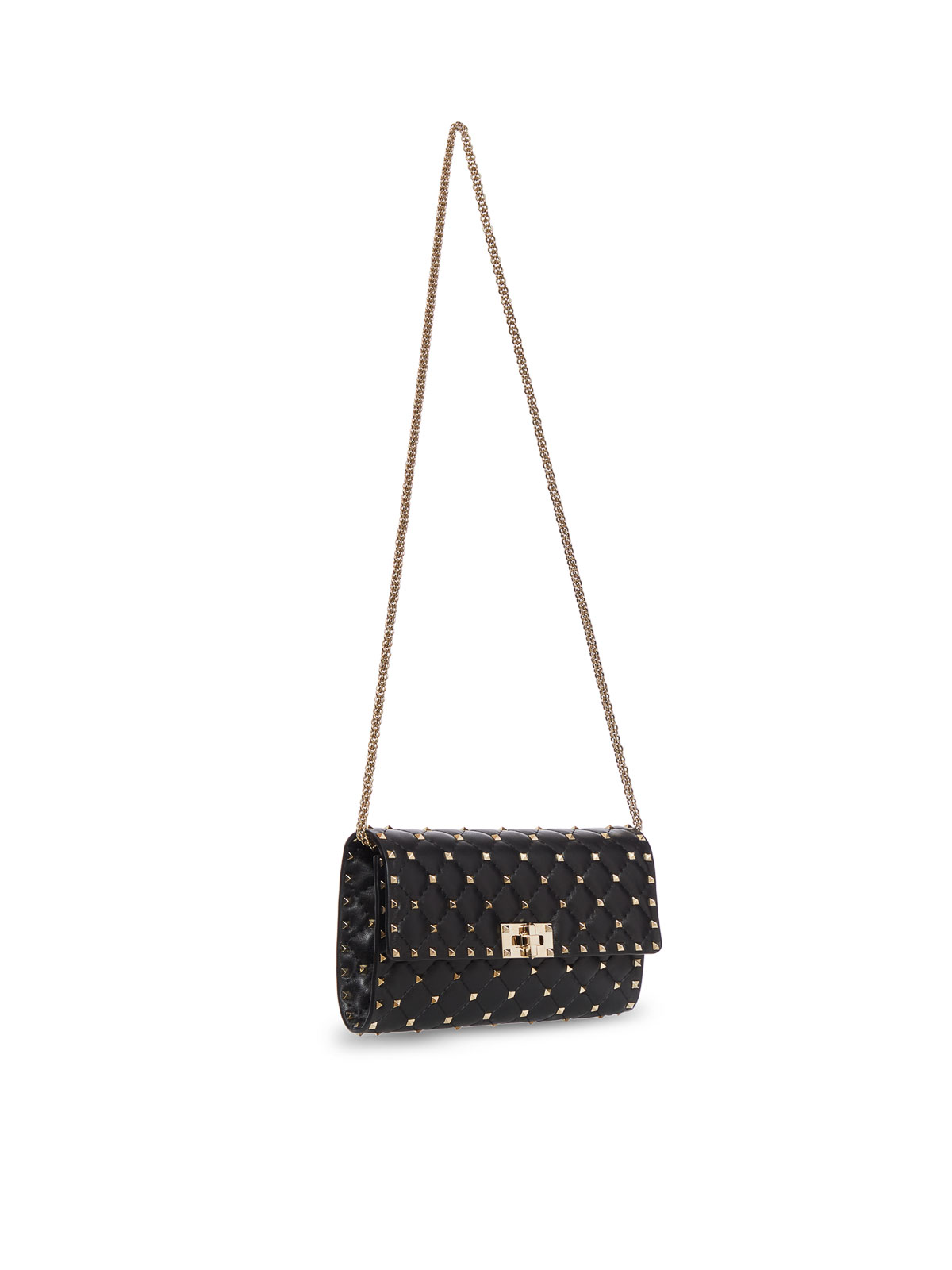 Can be worn on the shoulder cross, body or by hand, chain, quilted, pattern outlined by tone, on, tone stitching, platinum, finish studs and parts, flap with twist lock, - color black