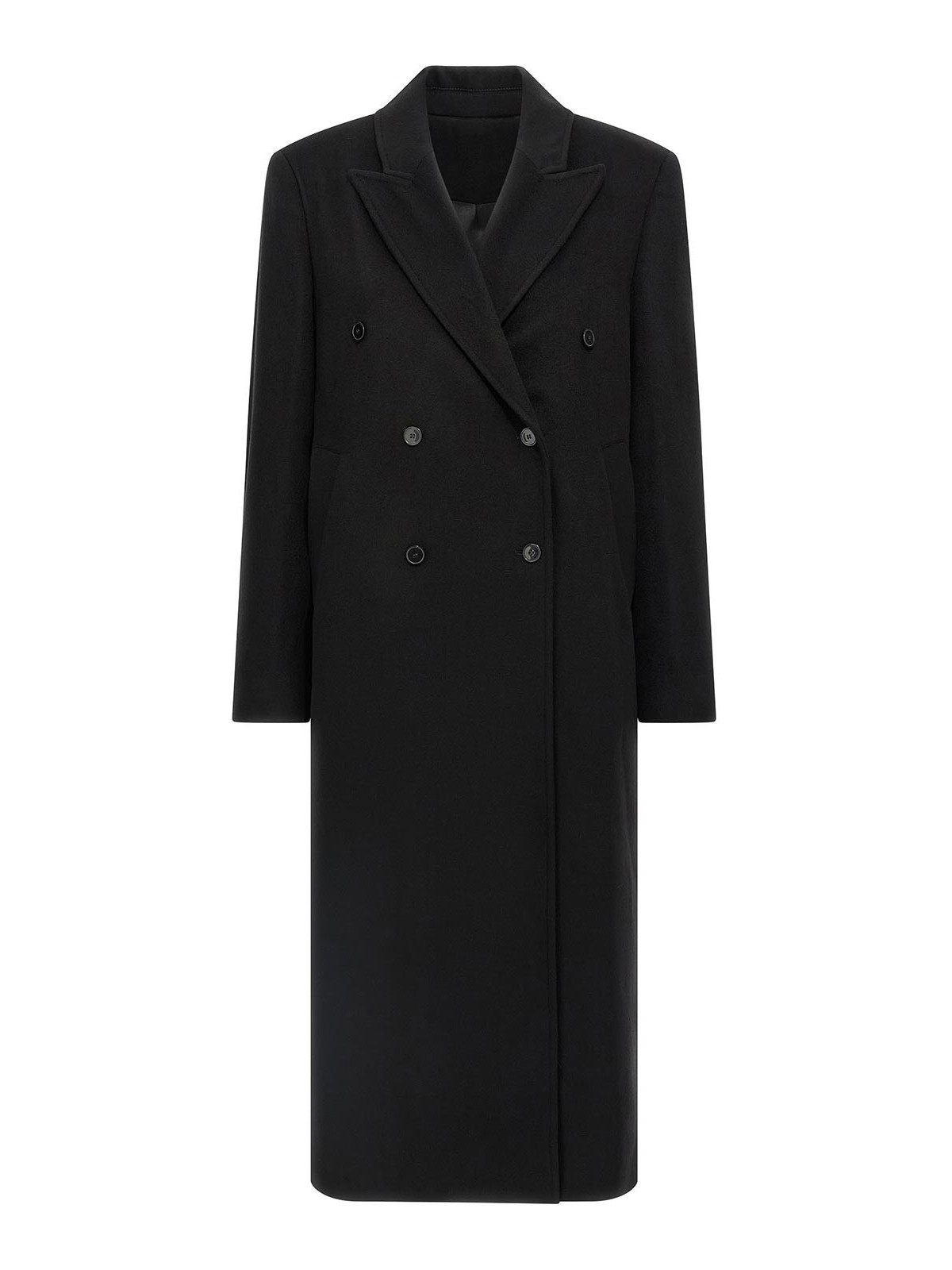 rosco' double, breasted coat and drape with button peak lapels pockets long sleeves structured shoulder strap back split