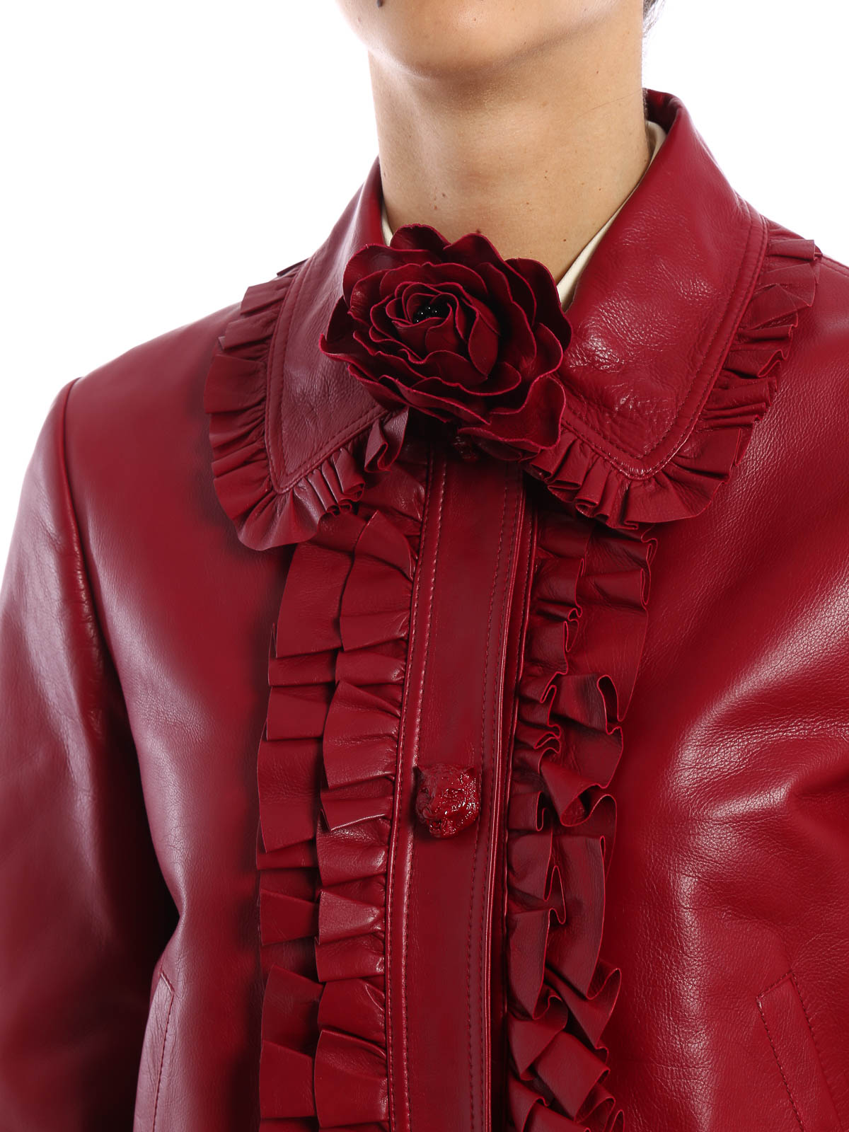 GUCCI: leather jacket - Ruffle detailed leather jacket