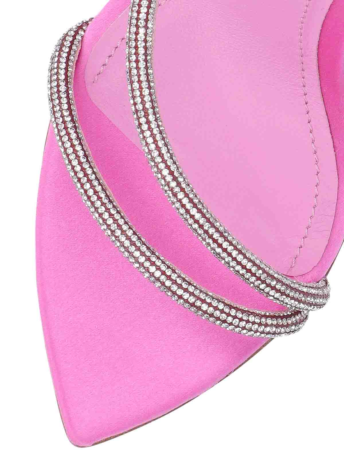 Lily juin sandals in pink satin open toe thin silver upper bands silver adjustable leather stiletto ankle strap