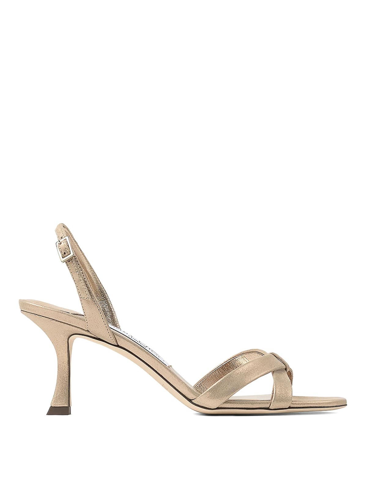Gold leather upper crossover straps sling-back design buckle fastening stiletto heel