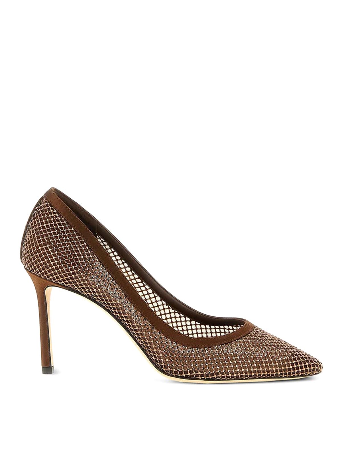 Brown crystal embellishment pointed toe stiletto heel