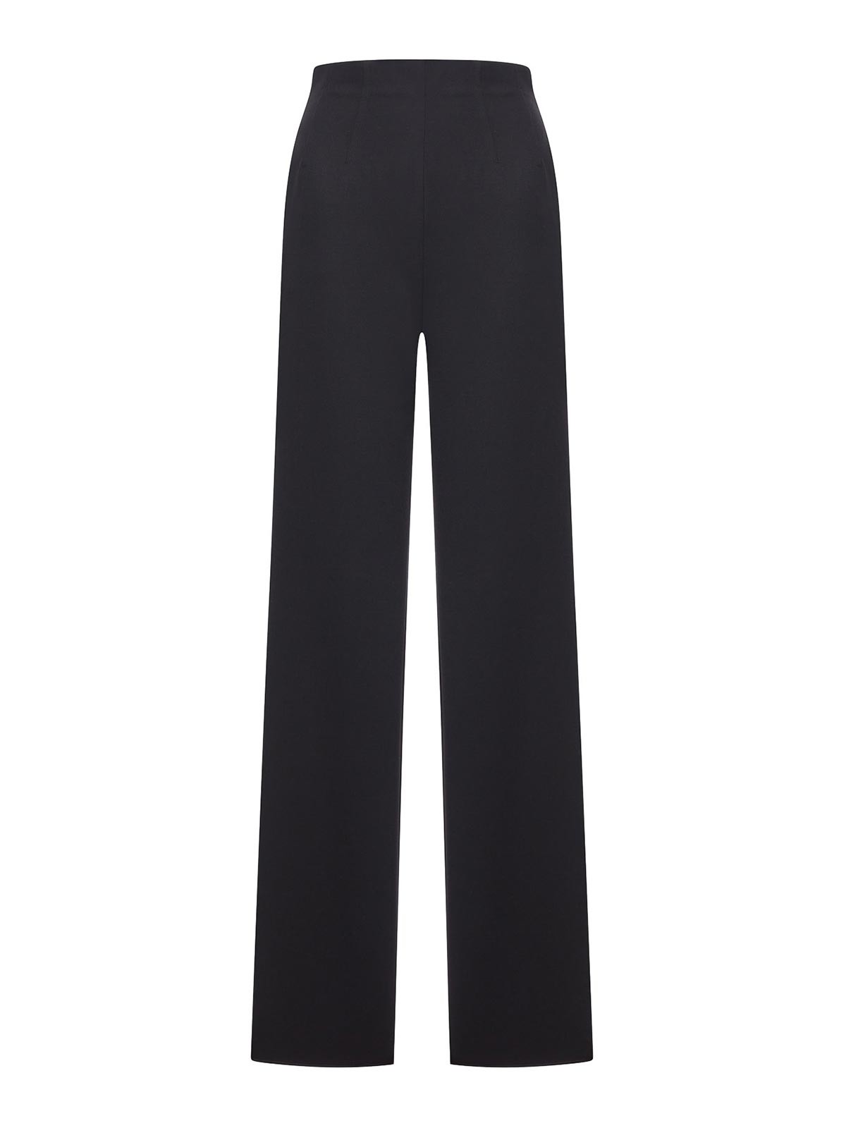Pure gabardine trousers, organza feel, straight fit, invisible back zip, inset side pockets, back welt pockets, tone, on, tone side bands, color black