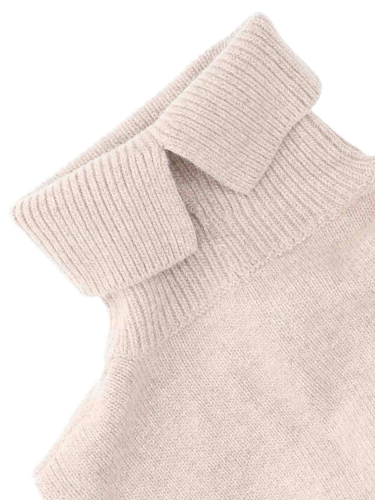 Lvir wool blend neck scarf, beige, high ribbed collar, adjustable scarf, ribbed trims.