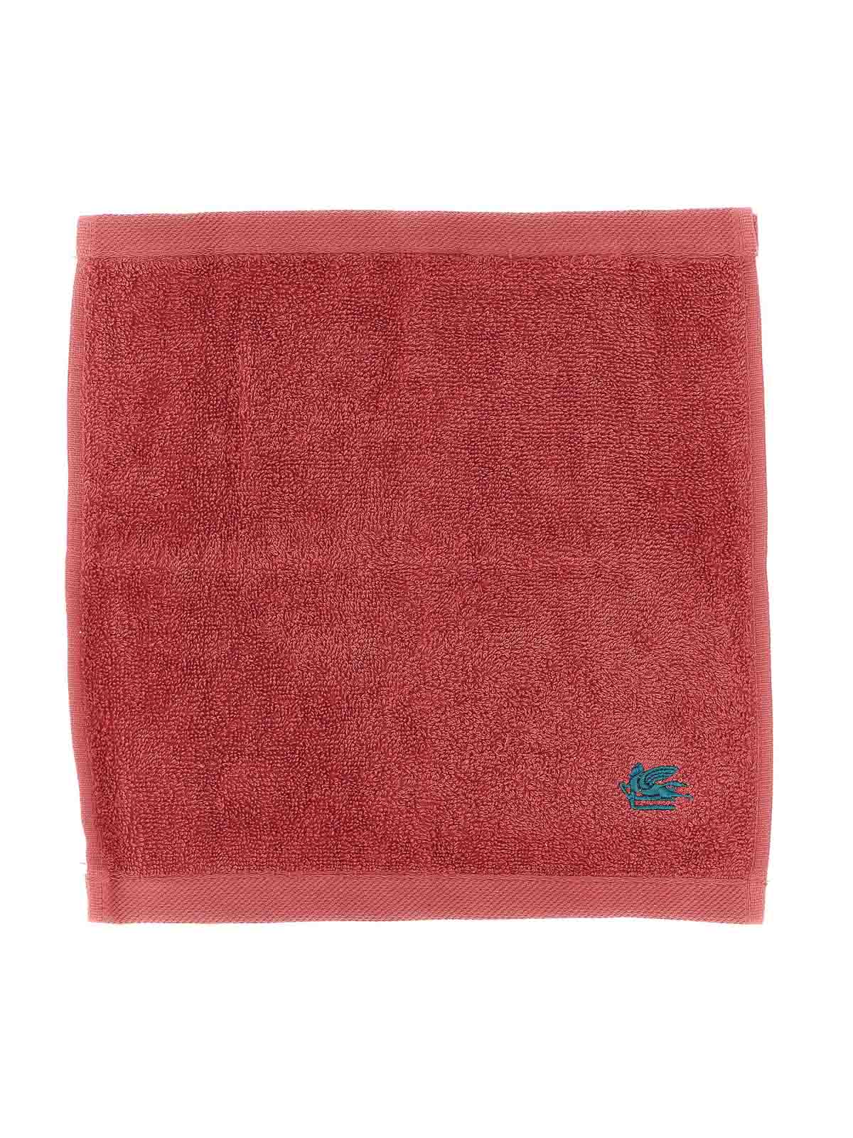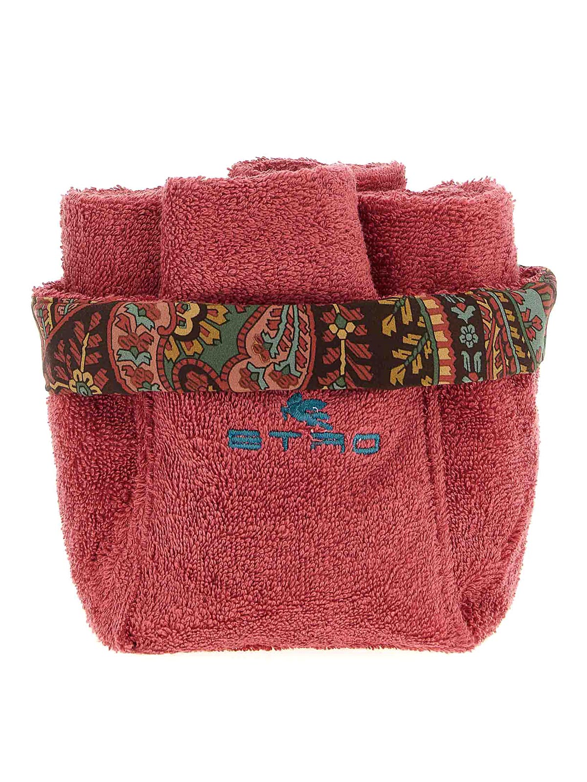 Set of 4 'giano' cotton terry washes with logo embroidery, washing basket with logo embroidery and patterned cotton piping.