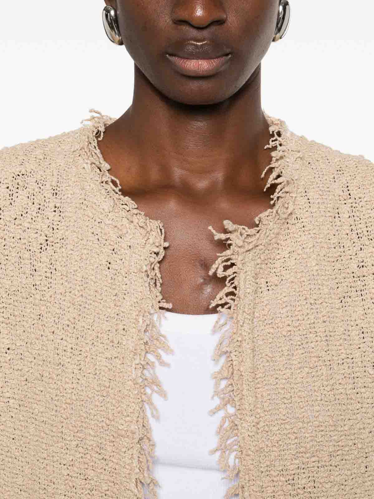 Beige fringed trims open front