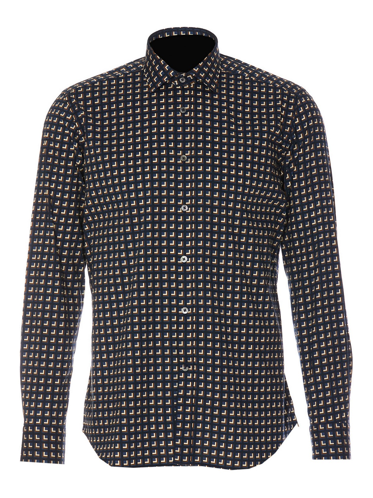 Bagutta blue shirt frontal buttons closure classic collar button on cuffs patterned
