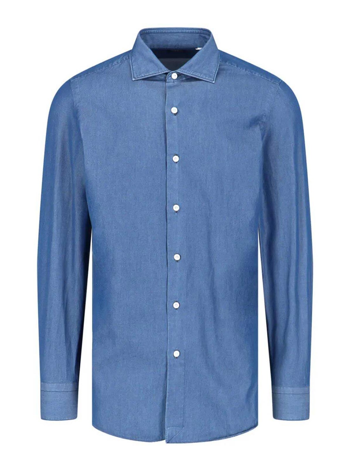 The Finamore shirt is a perfect balance between sartorial tradition and contemporary casual style. Made of soft denim, this shirt stands out for its impeccable cut and refined details, such as the classic collar and mother-of-pearl button closure. Ideal for those who love a versatile look, it can be worn both under a jacket for a more formal outfit or alone for a relaxed yet refined touch.