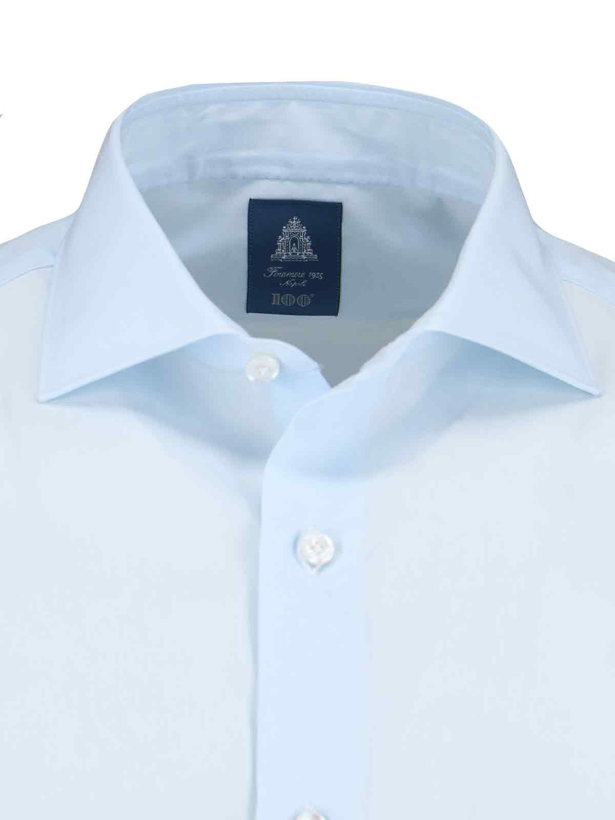 Finamore 1925 milano shirt, in light blue cotton, classic collar, button closure, contrasting side logo embroidery, buttoned cuffs, curved hem.
