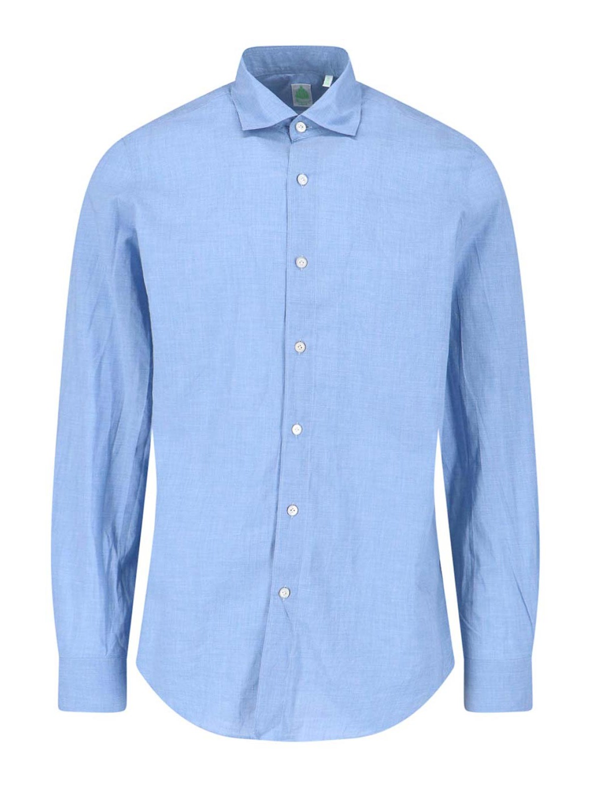 Finamore 1925 gaeta shirt in light blue linen, collar, long sleeves, button closure.