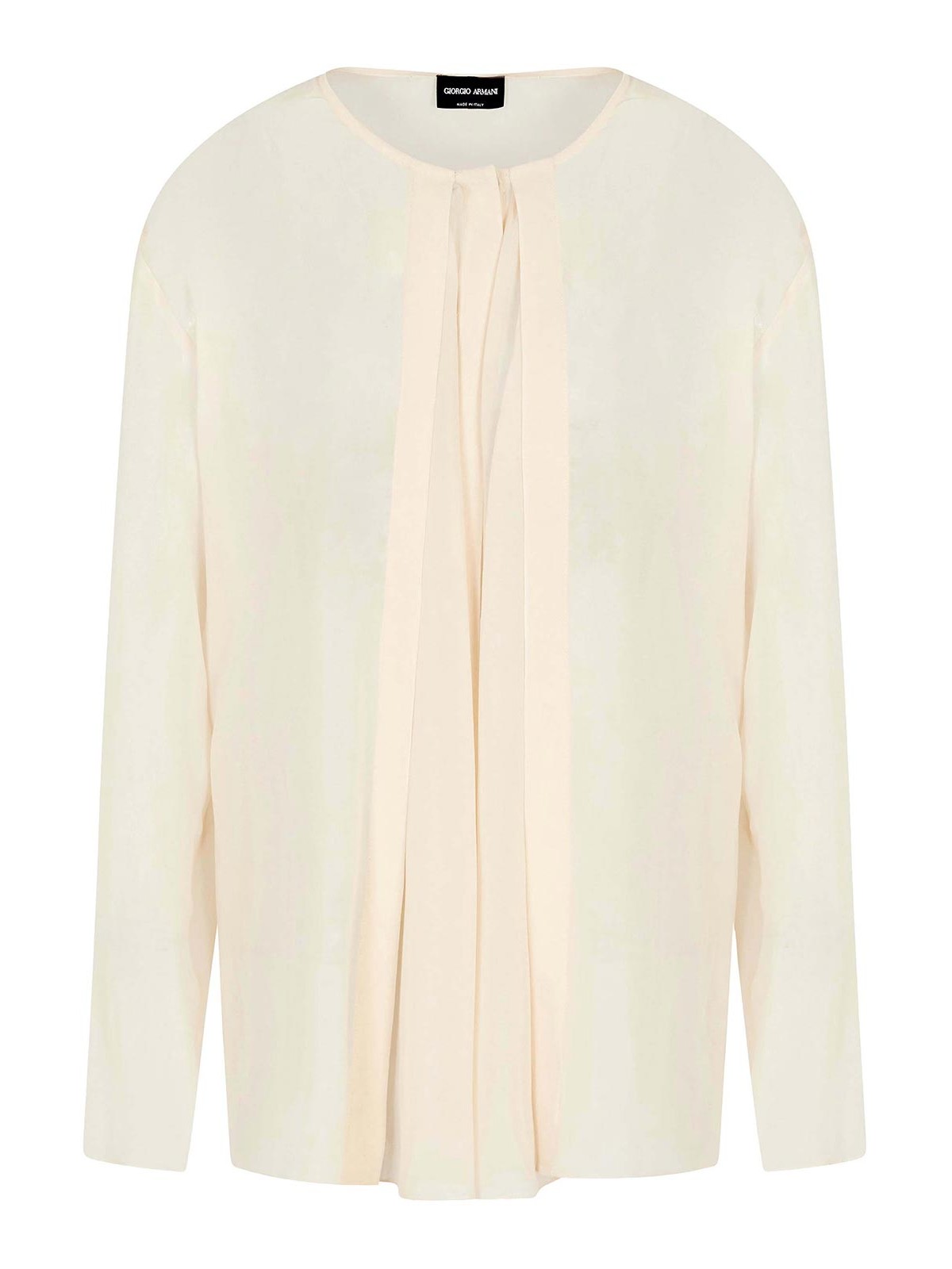 SHIRT IN Georgette of Fluida with round neckline and hidden buttons overlapping it creates an elegant front drapes long sleeves and soft line for a sophisticated and feminine look perfect with pants or skirts