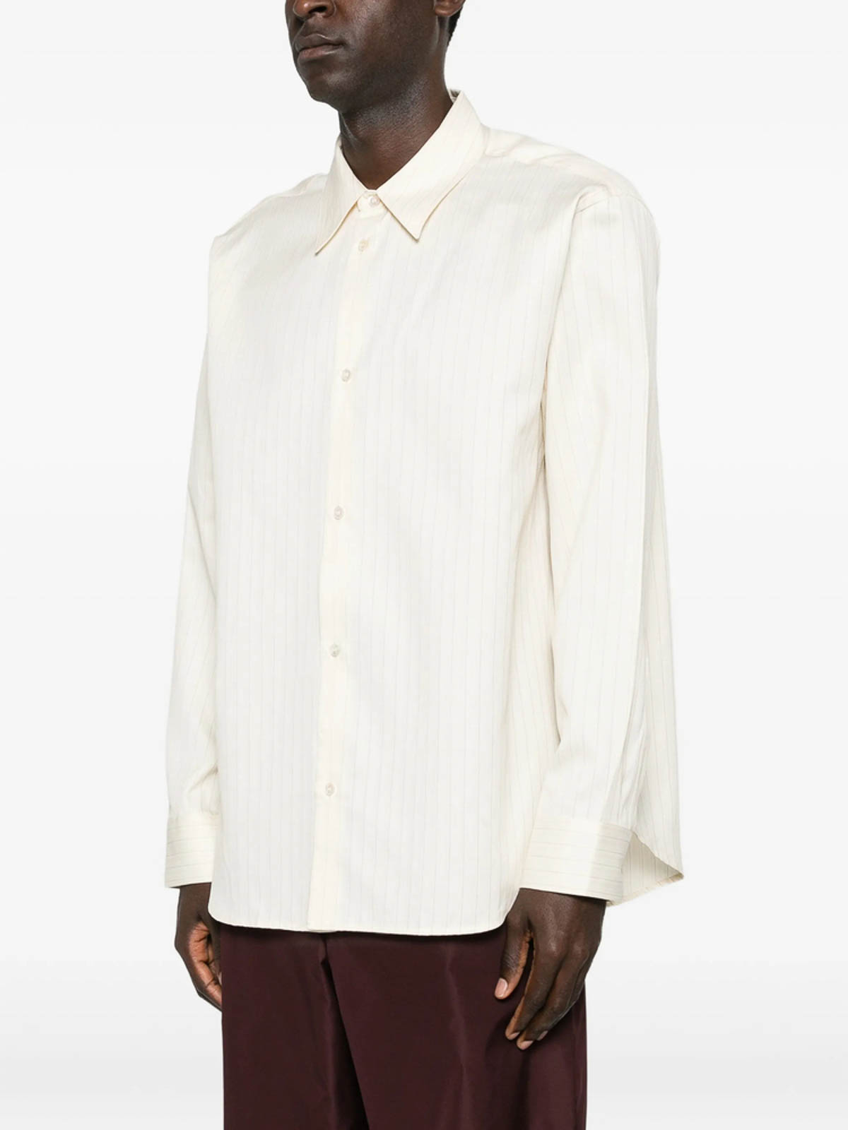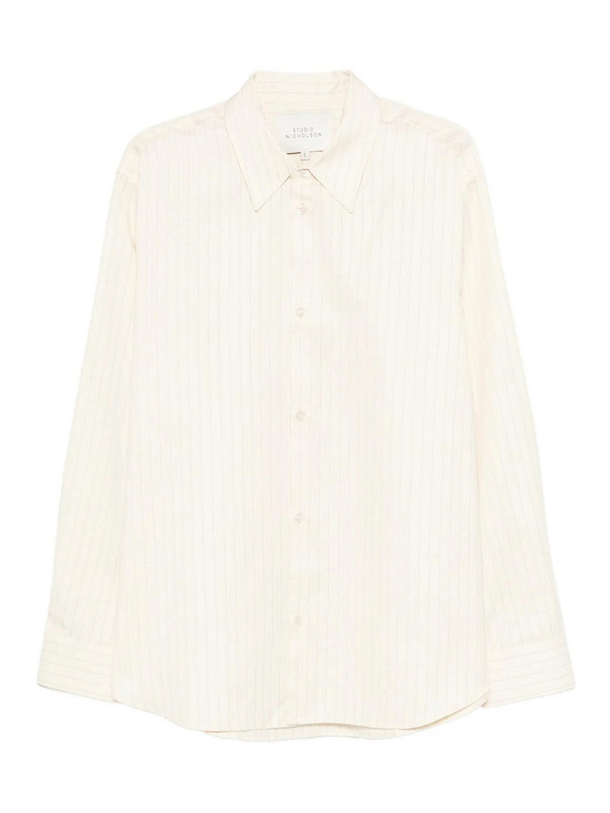 Beige, button fastening point collar long sleeves buttoned cuffs stripe pattern