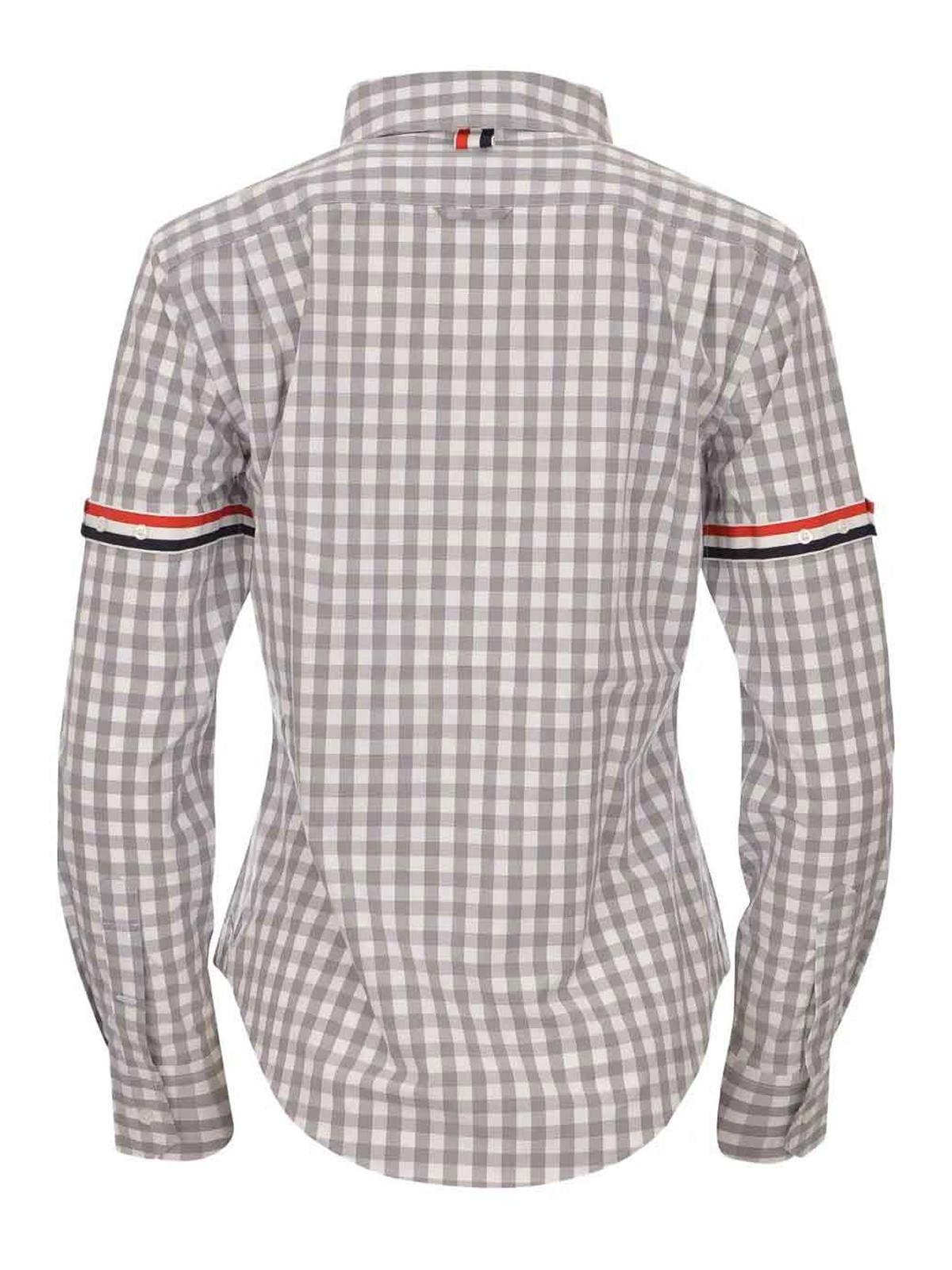Medium grey gingham check point collar long sleeves armbands button fastening