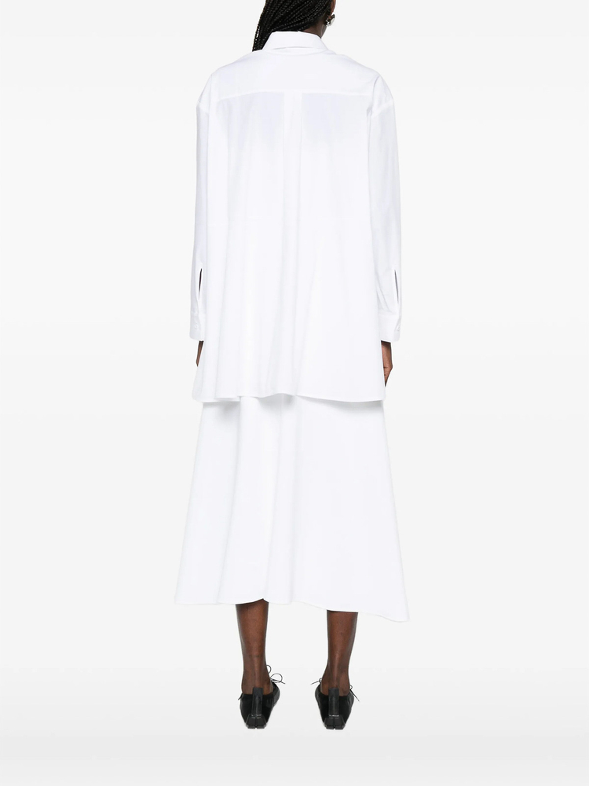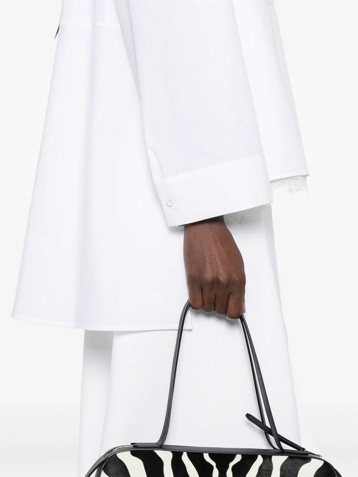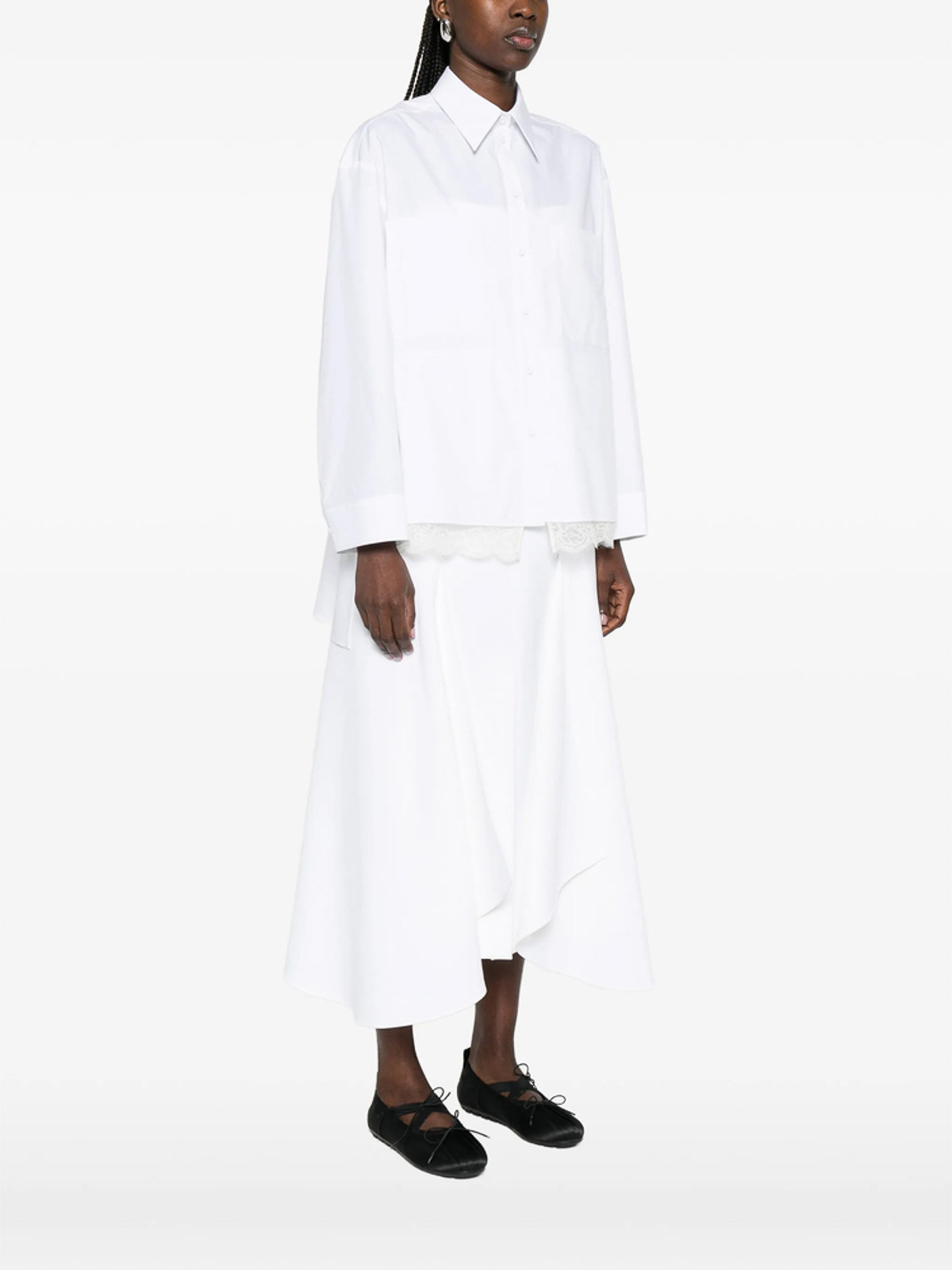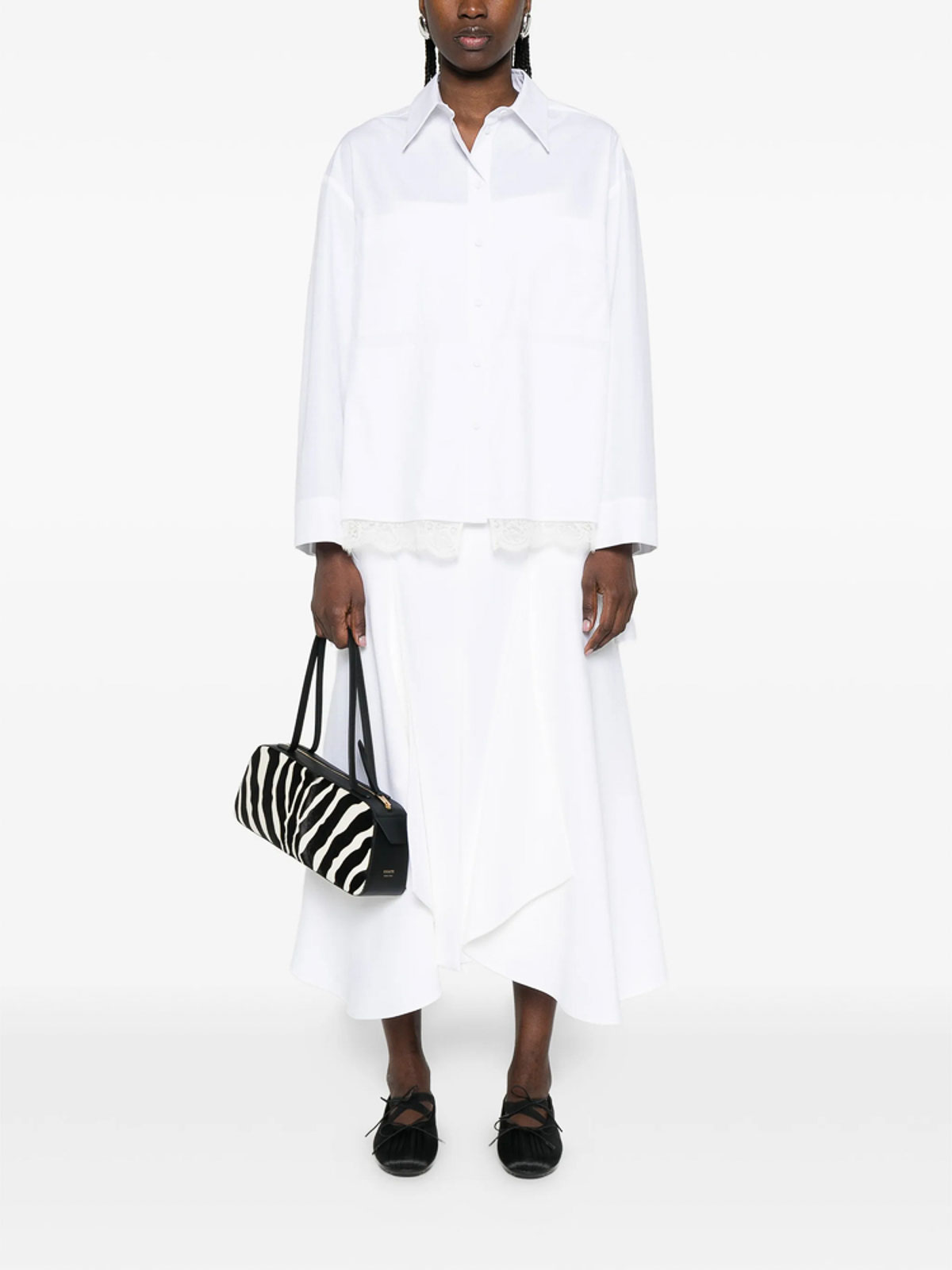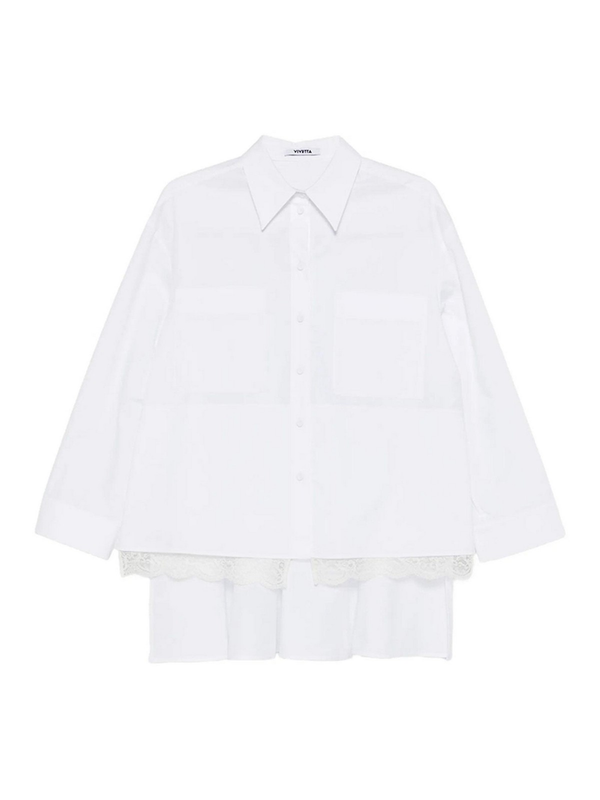 White two front patch pockets lace trim button fastening drop waist long sleeves