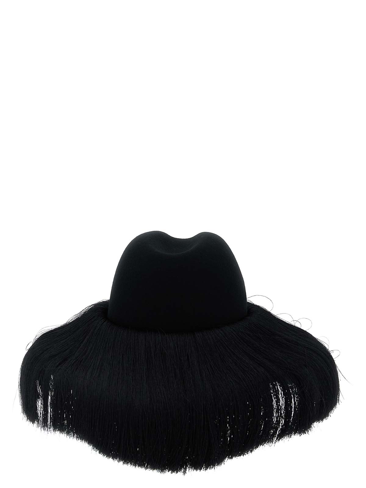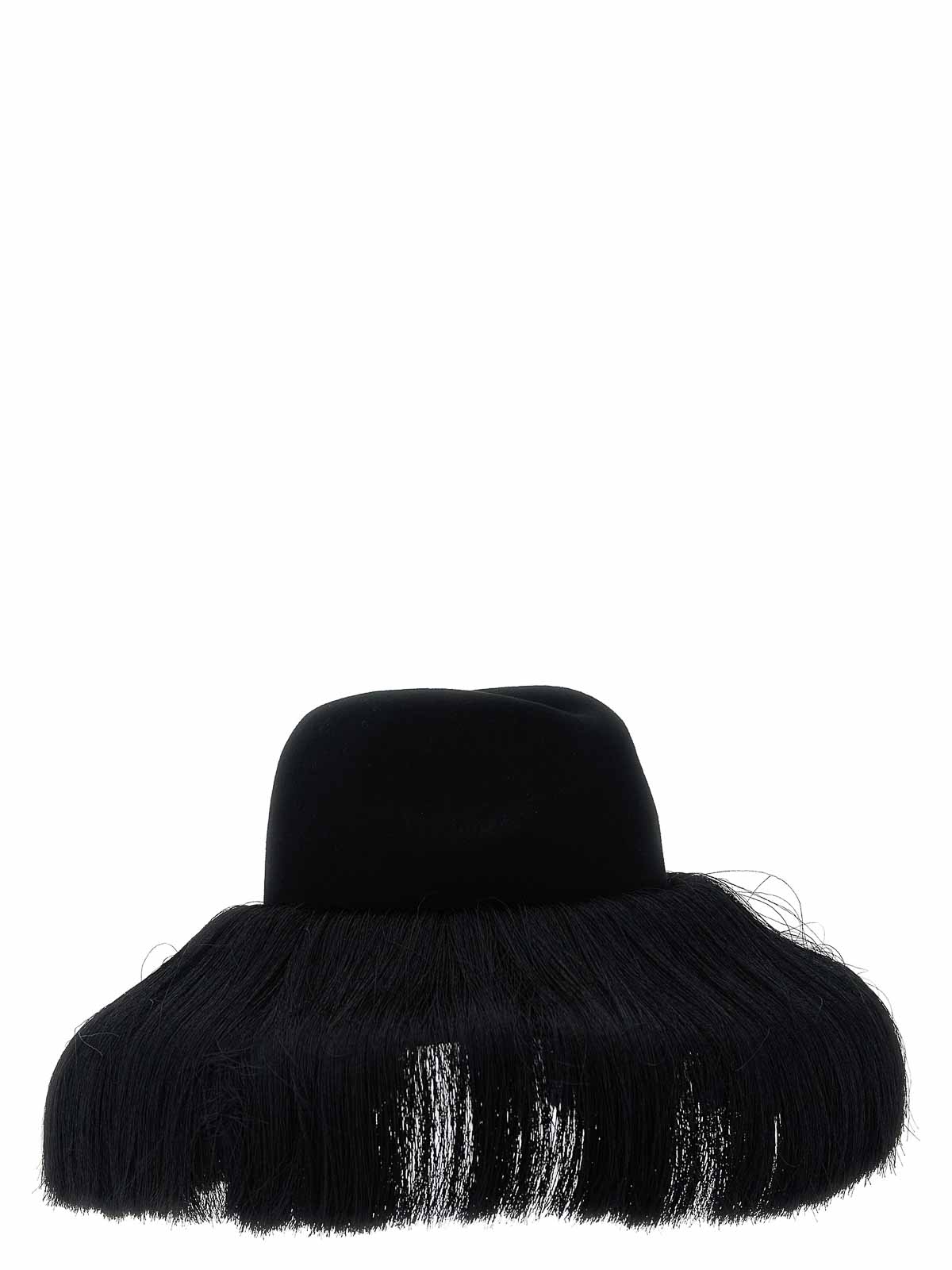 Comme des garons shirt hizume hat wide, brimmed fedora style with all, over fringes
